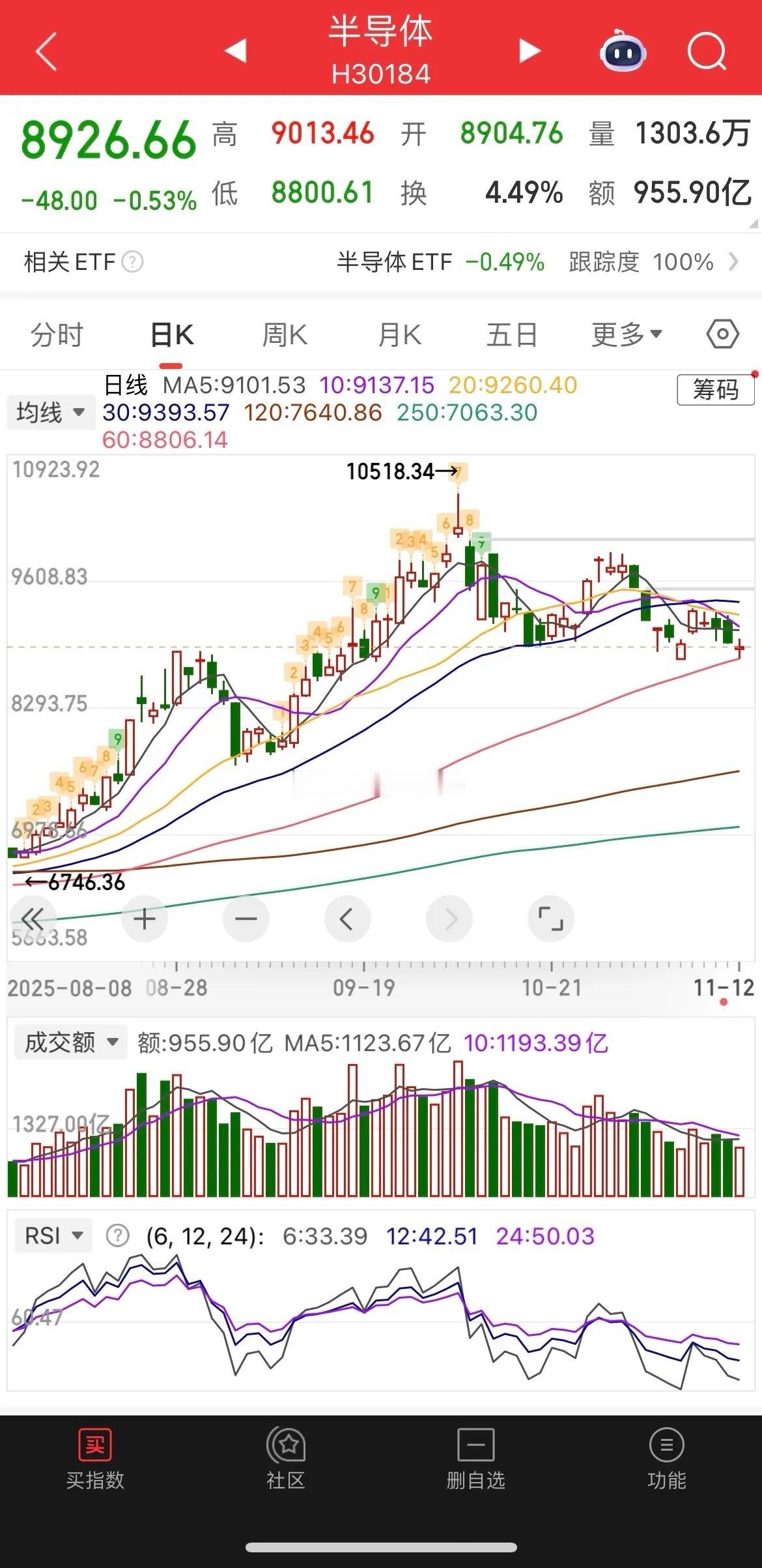 一觉醒来,黄金大涨,中概股普跌,纳指金龙指数1.46%,阿里、百度跌近2%,小鹏跌近3%,拼多多、京东跌近1%,百济神州大涨近10%,大全新能源跌近10%,富时A50跌0.1%,恒生主连跌0.26%,这样看今天我们大A可能会小幅低开,不过低开高走概率大,而港股今天有望冲击4连阳。昨晚美股三大指数涨跌不一,道指涨0.68%,再创历史新高,纳指跌0.26%,大型科技股涨跌不一,英伟达涨0.33%,特斯拉跌2%,苹果跌0.6%,美光科技涨逾1%,AMD暴涨9%,甲骨文大跌近4%,台积电跌0.18%,现在看美股也分化厉害,小登科技股涨不动,传统蓝筹老登上位接力创新高,和大A的剧本一样。昨天市场探底回升,农王扛旗,内资跑了800多亿,沪指险守4000点,稳如老狗,双创却连跌4天,中证红利指数则录得8连阳,极端分化,两市缩量近500亿,目前总成交额已经不足2万亿,没有量资金又开始步入防御避险状态,也就是银行生,万物死,板块上昨天银行、保险、创新药逆势走强,农行、工行双双新高,而光伏、新能源稀土全线重挫,CPO和半导体半死不活,机器人4连杀,存储延续强势,现在看市场热点杂乱,板块飞速轮转,科技硬不起来,市场就半死不活,所以半导体和CPO啥时候止跌企稳,市场赚钱效应就啥时候打开、不然继续温水煮青蛙,今天看估计还得吃药。点赞就是对罗洋最大支持!