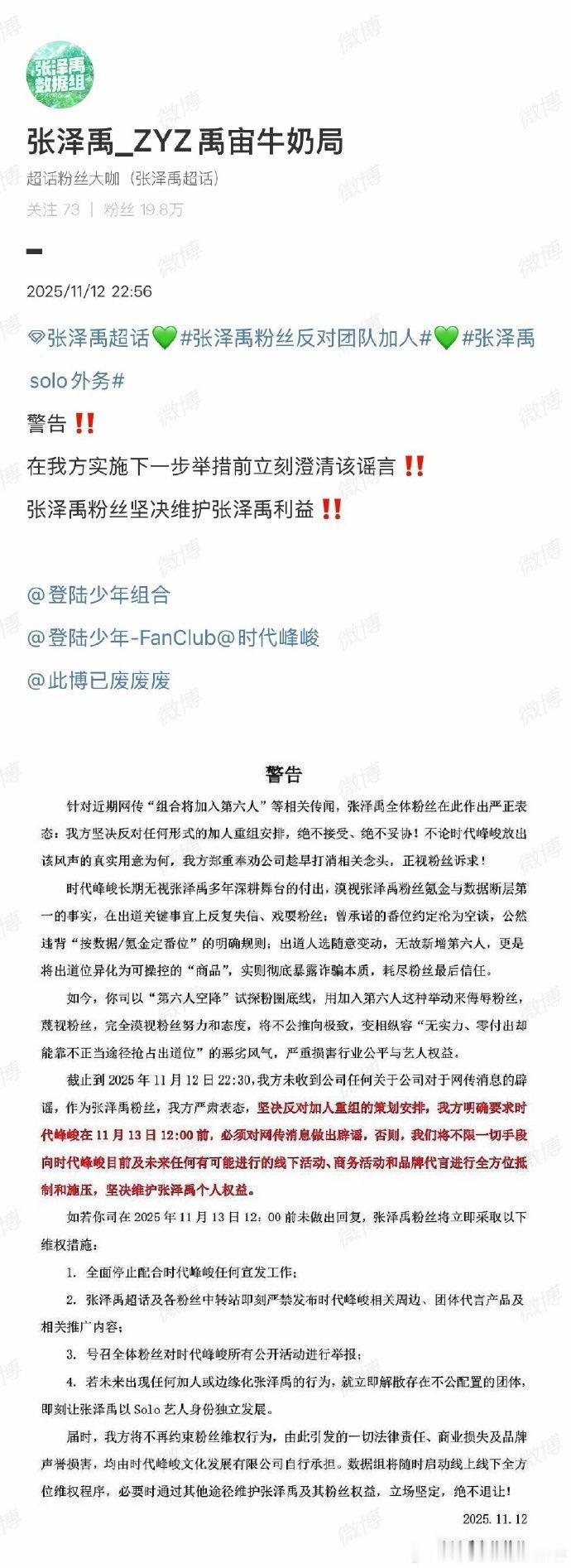 登陆少年各家全发文了,拒绝加入新人朱志鑫张泽禹张极左航苏新皓