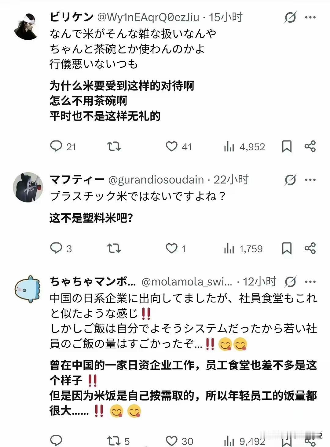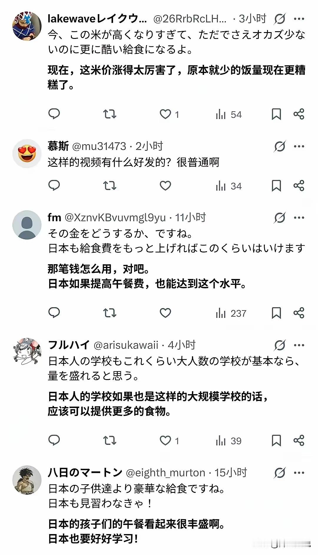 哎呦,这中国学生打个米饭,也能让日本人这么破防? 堂堂的发达国家,咋是这德行呢?先有韩国拿着泡面当国宴,现有日本对着米饭发感慨。之前听说了日本的米荒,确实没想荒成这样。 这恐怕就是日本总出“寿司之神”,“天妇罗之鬼”的原因吧!不就是穷讲究嘛,吹得这么神?米其林为什么在日本有那么多星级店啊?“盘大,量少”正符合日本穷精致的逻辑[捂脸] 日本学校热议 日本学校配餐 日本学生午餐