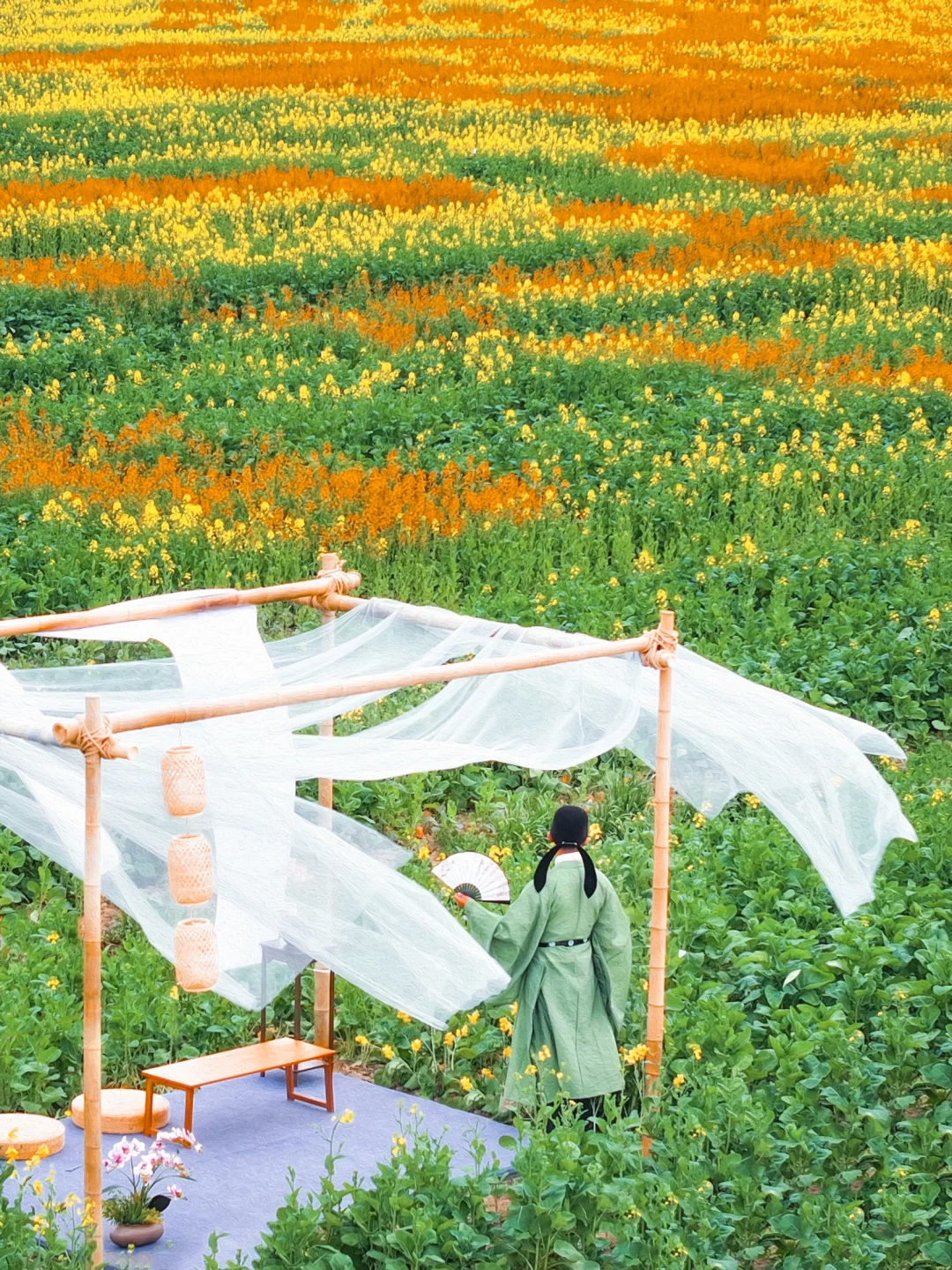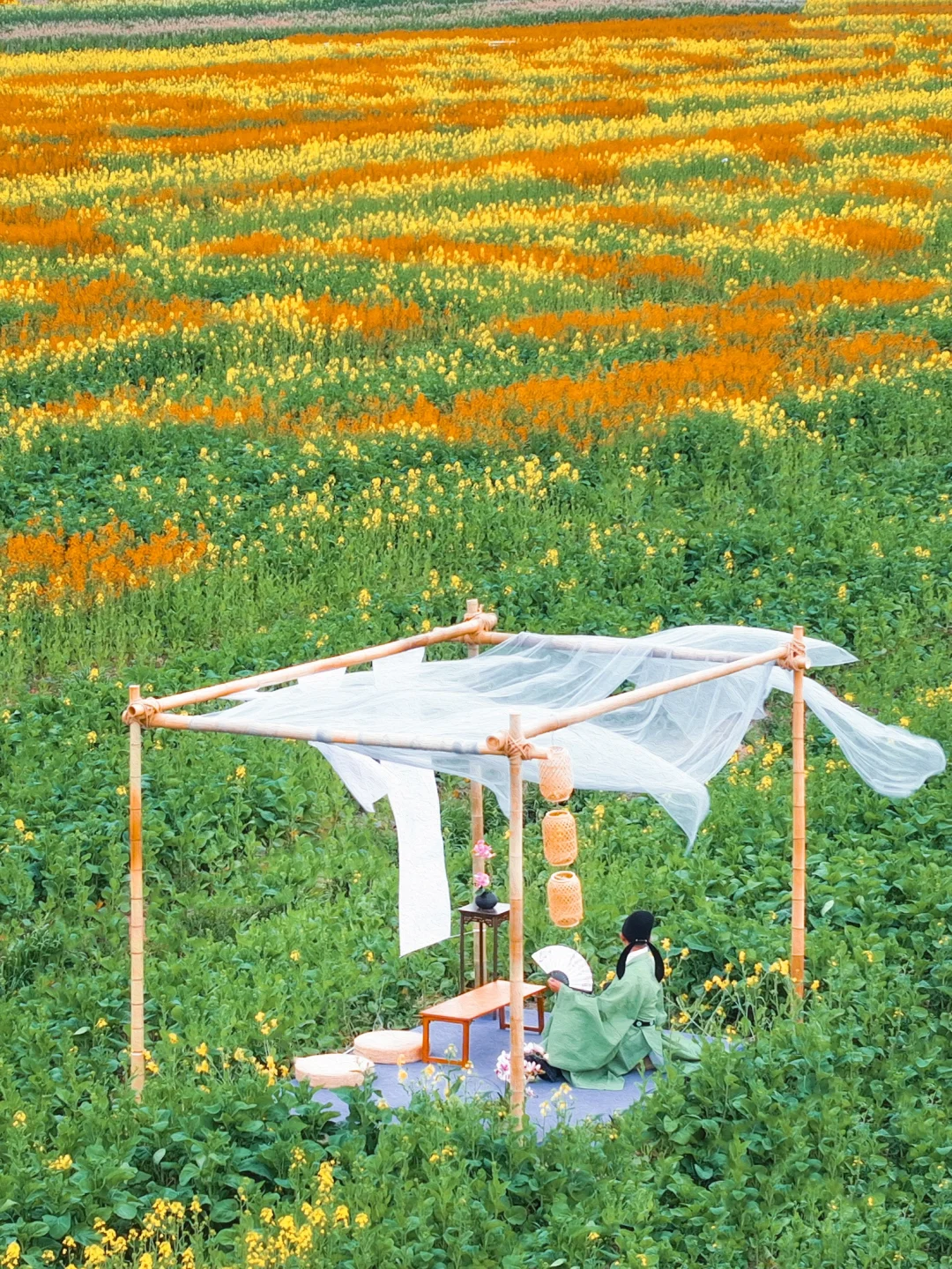 ✅围炉煮茶:花海边品茶赏景,搭配国风民乐表演,氛围感拉满