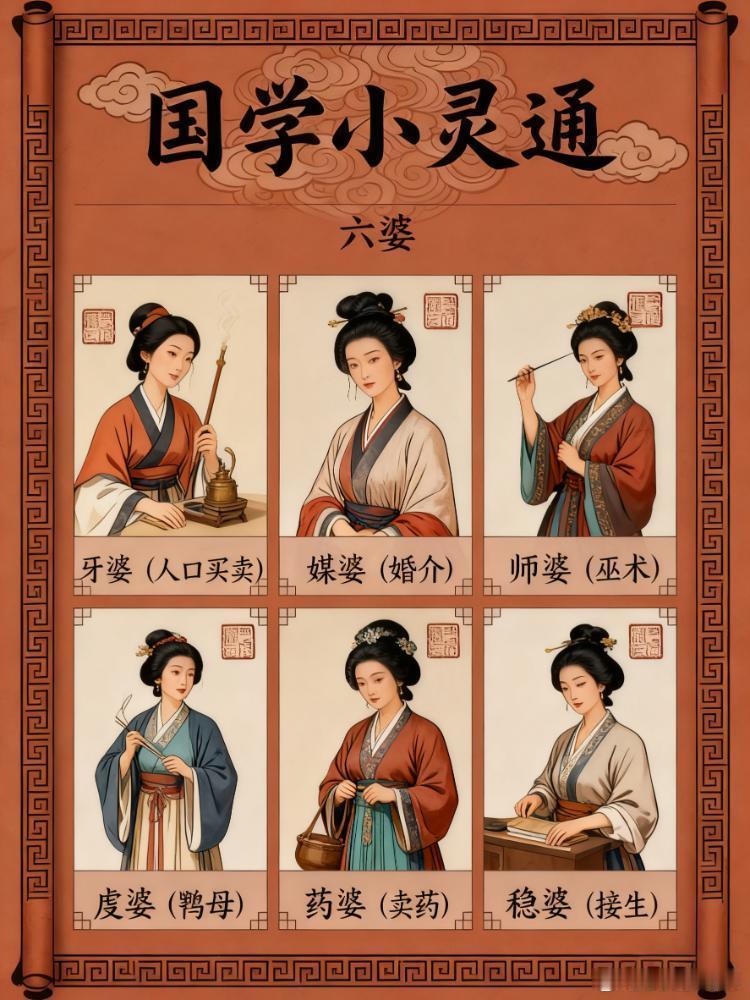 三姑六婆是哪些人?三姑:宗教与占卜类女性从业者尼姑:佛教出家女性。道姑:道教出家女性。卦姑:以占卜、算命为业的女性。六婆:旧时特定职业女性牙婆:旧时从事人口买卖或物品中介的女性。媒婆:专门促成婚姻的中间人。师婆:以巫术、祈福禳灾为业的女性。虔婆:旧时开设青楼、管理妓女的鸨母。药婆:走街串巷卖药(含偏方、草药)的女性。稳婆:旧时负责接生的助产士。