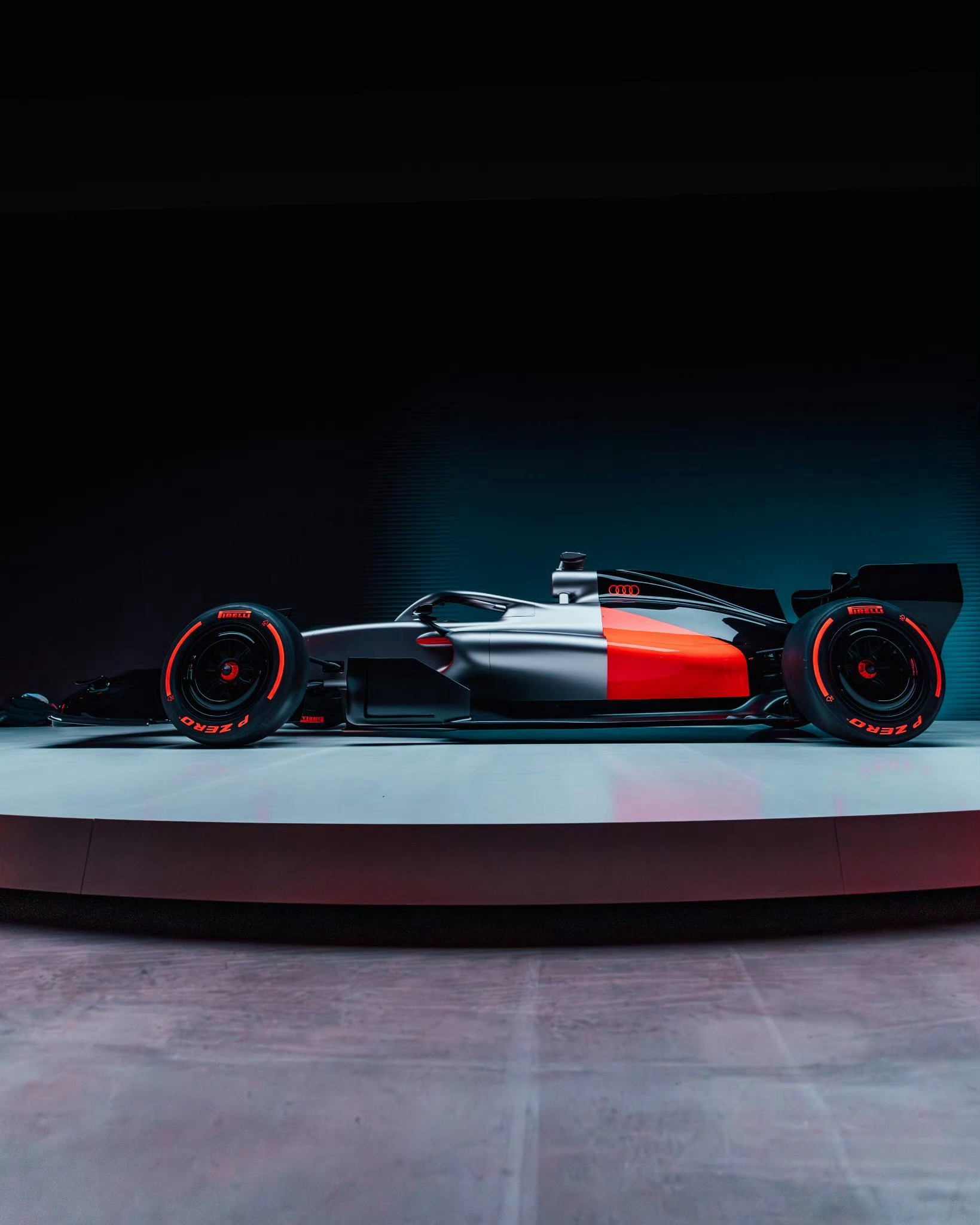 奥迪发布了2026赛季F1赛车的概念涂装,由银色、裸碳色和奥迪红配色所组成👀