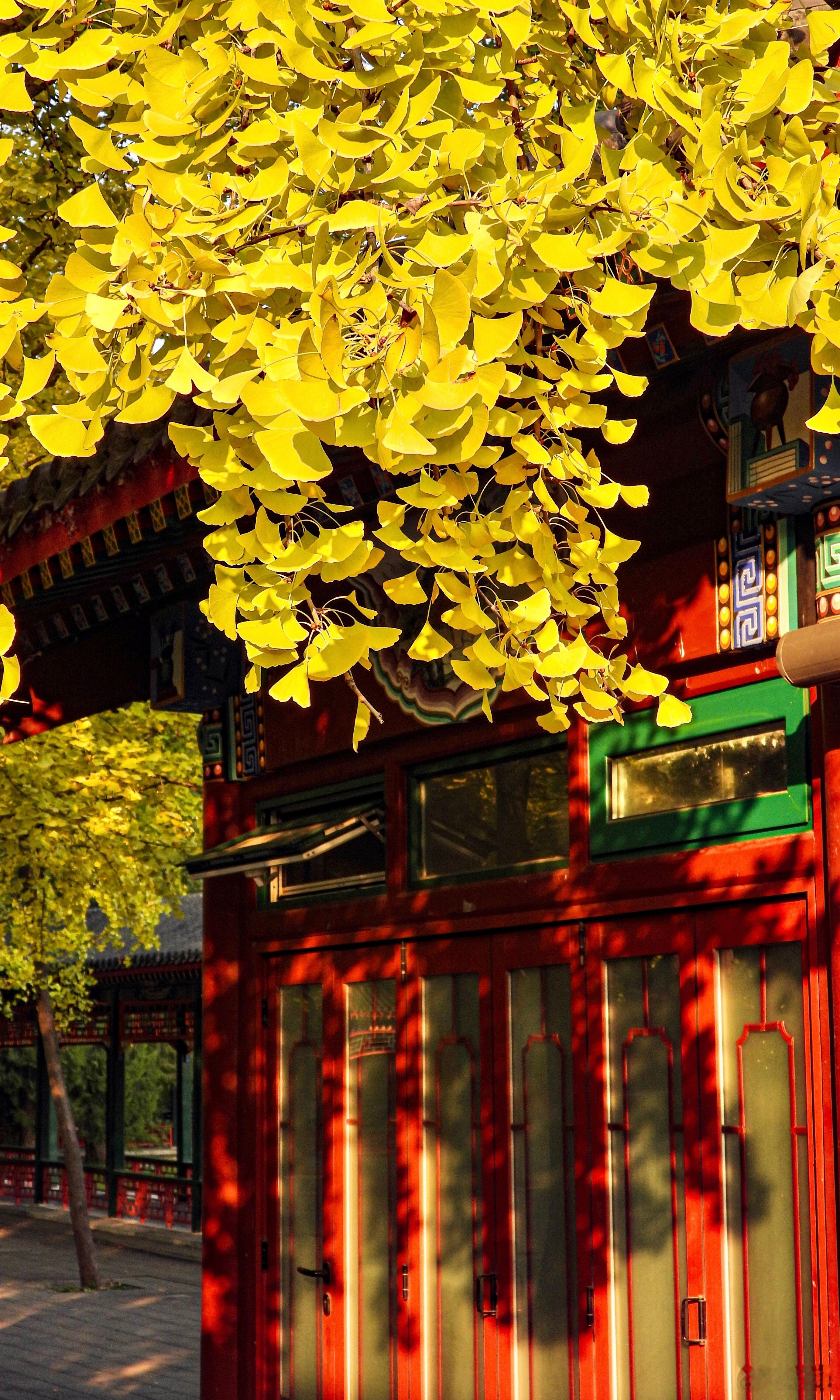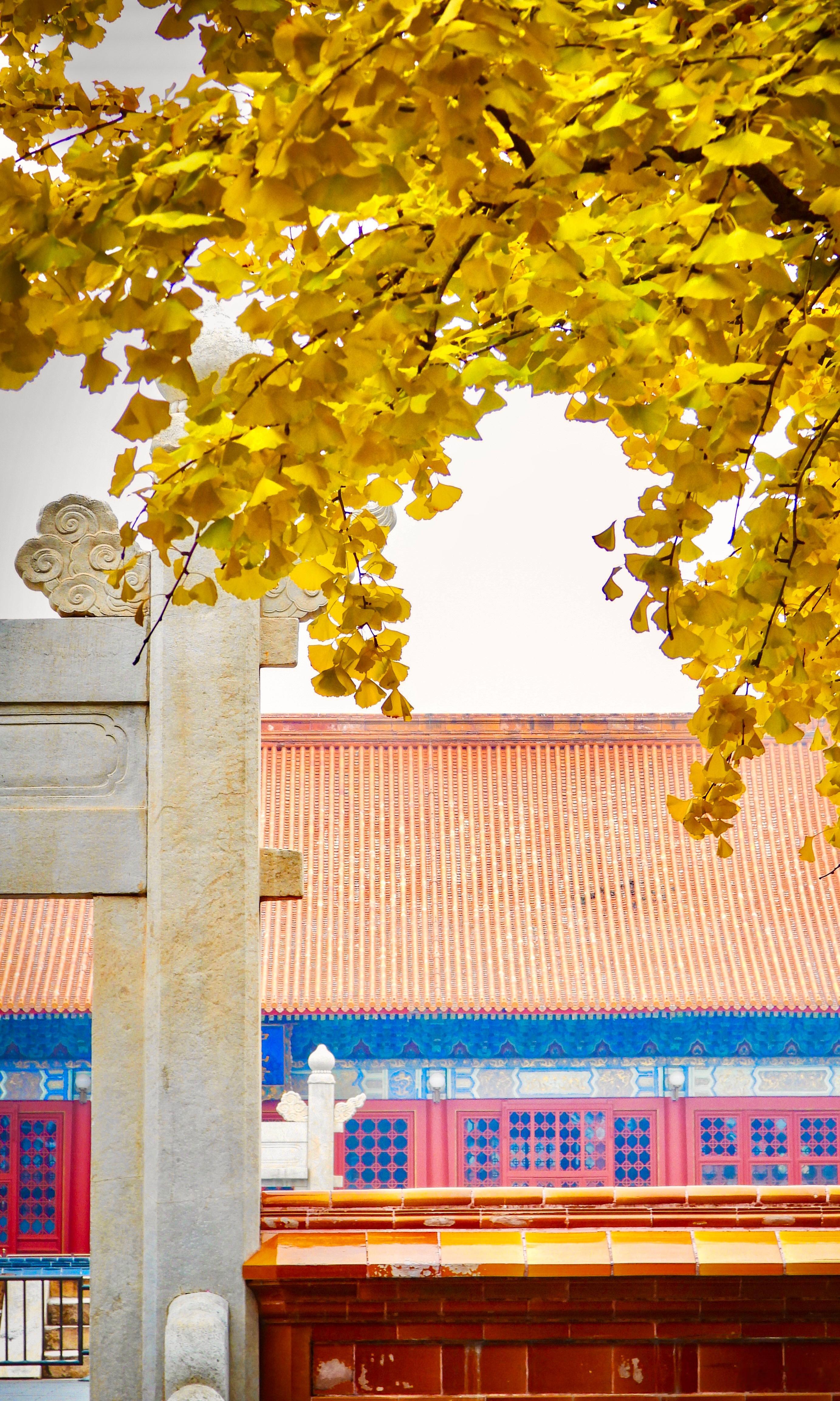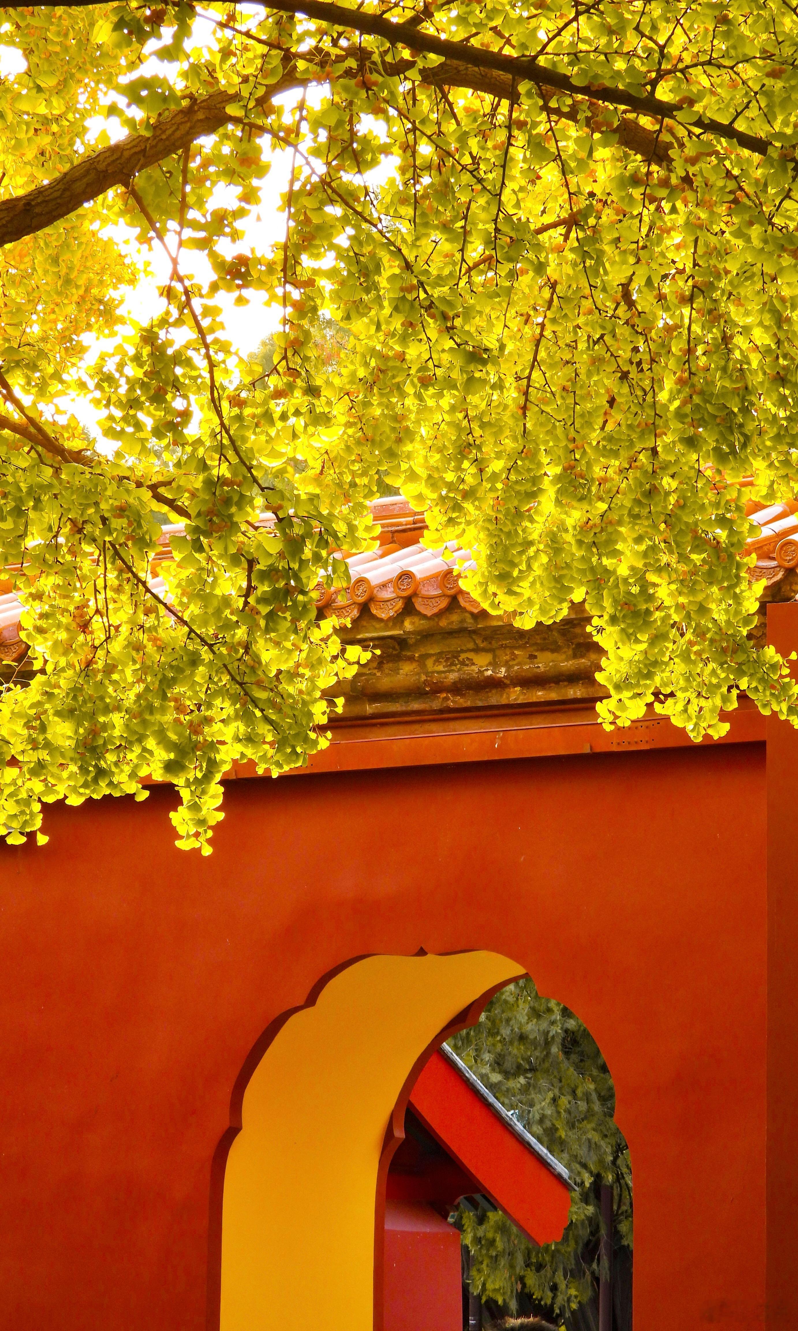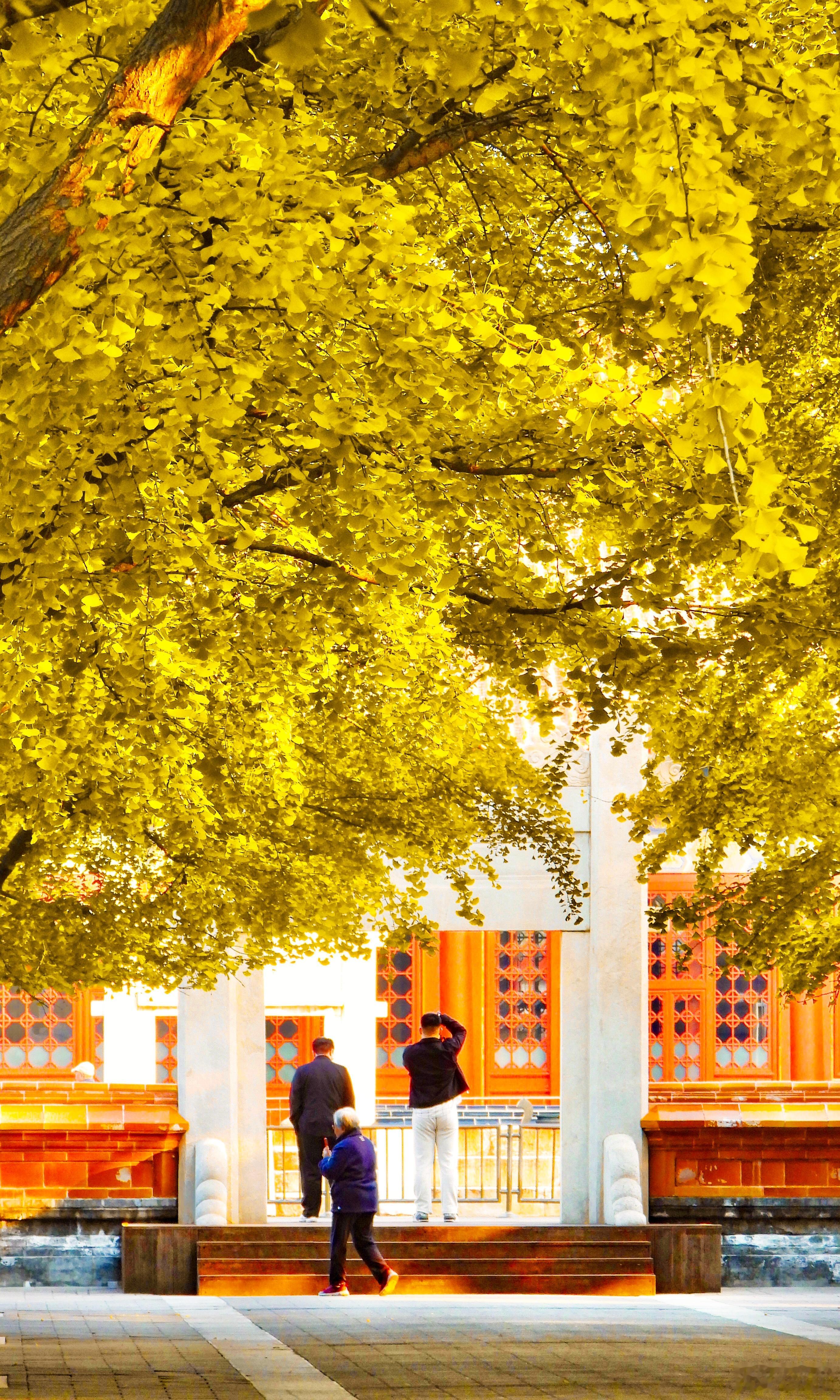 【北京中山公园】宫墙映日锁秋光,银杏凝金覆角廊。风过落英逐晓色,满园诗意满庭芳摄