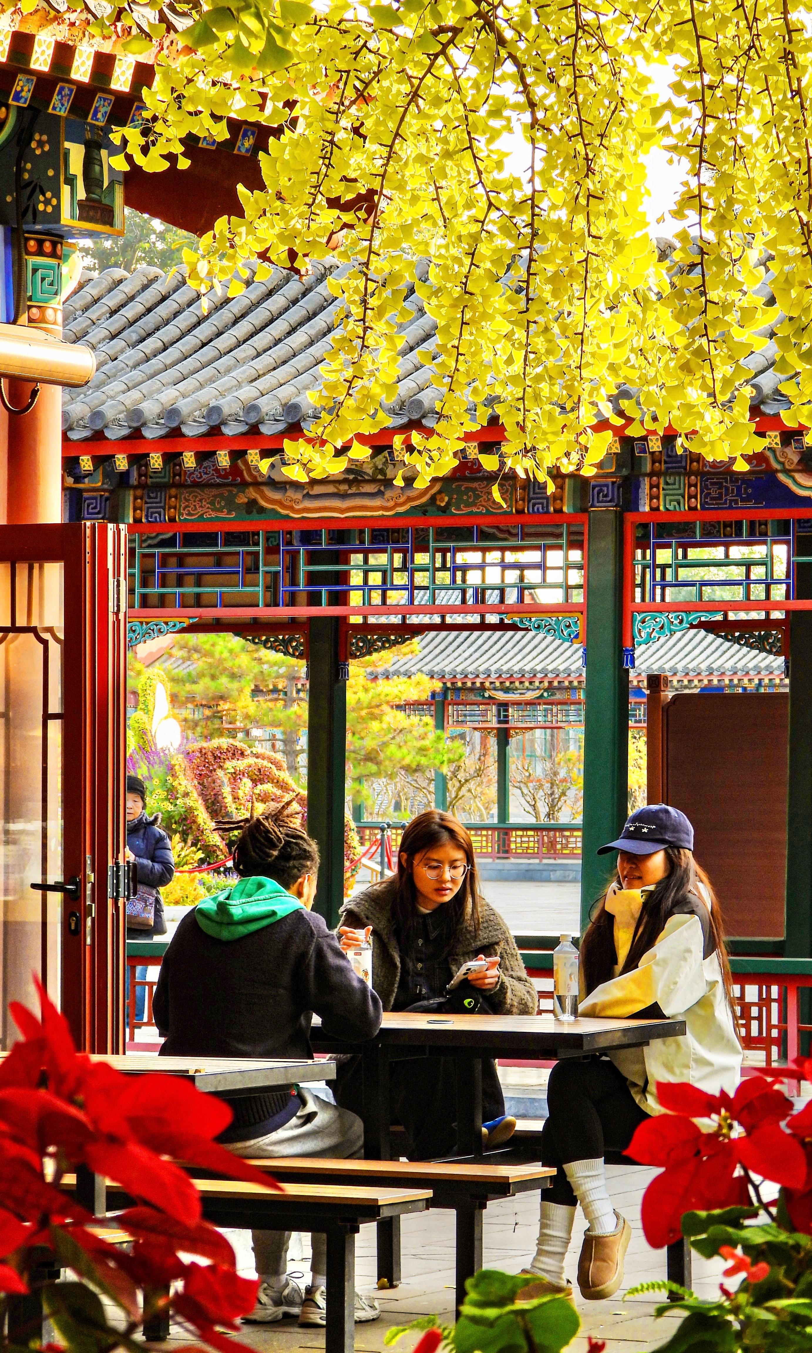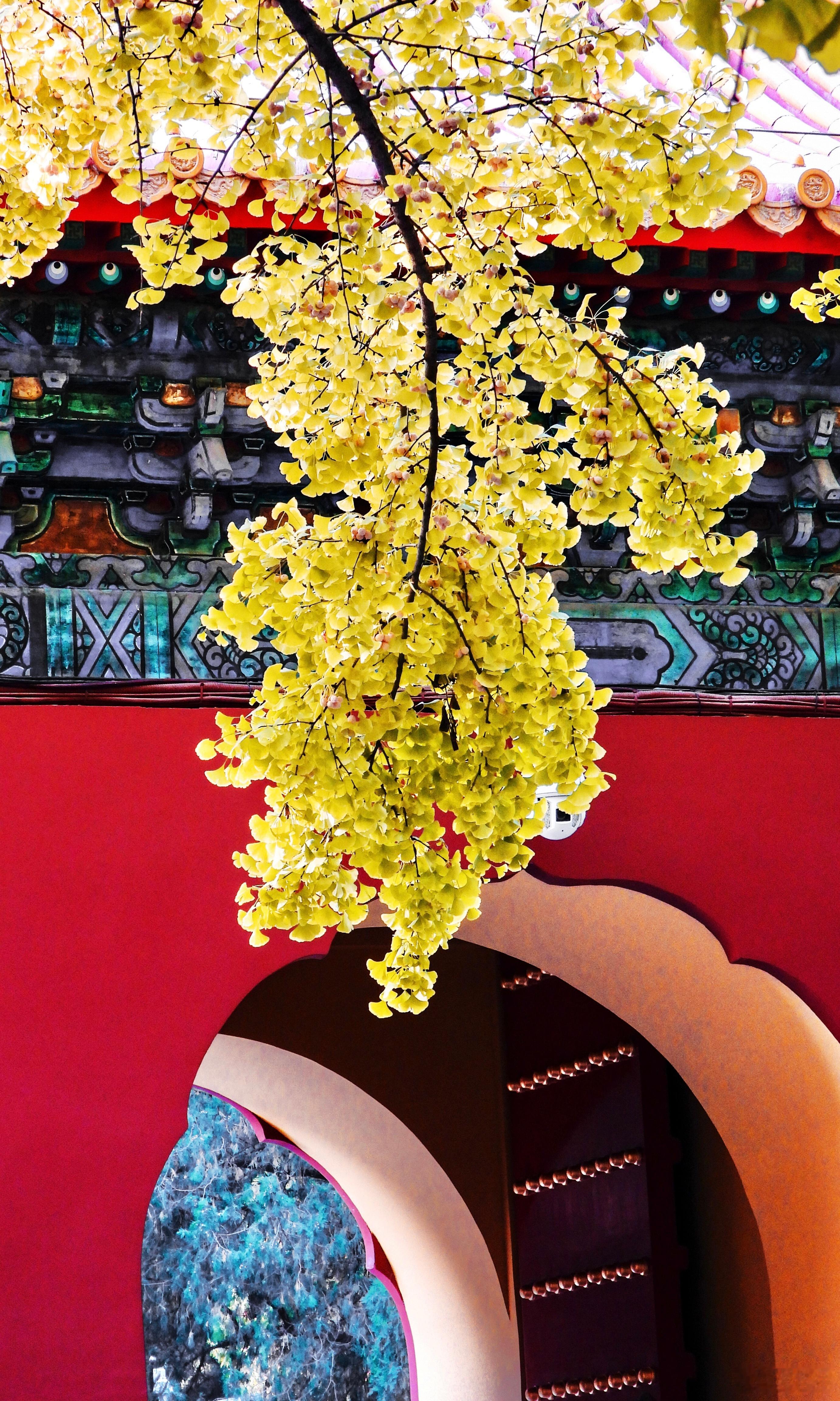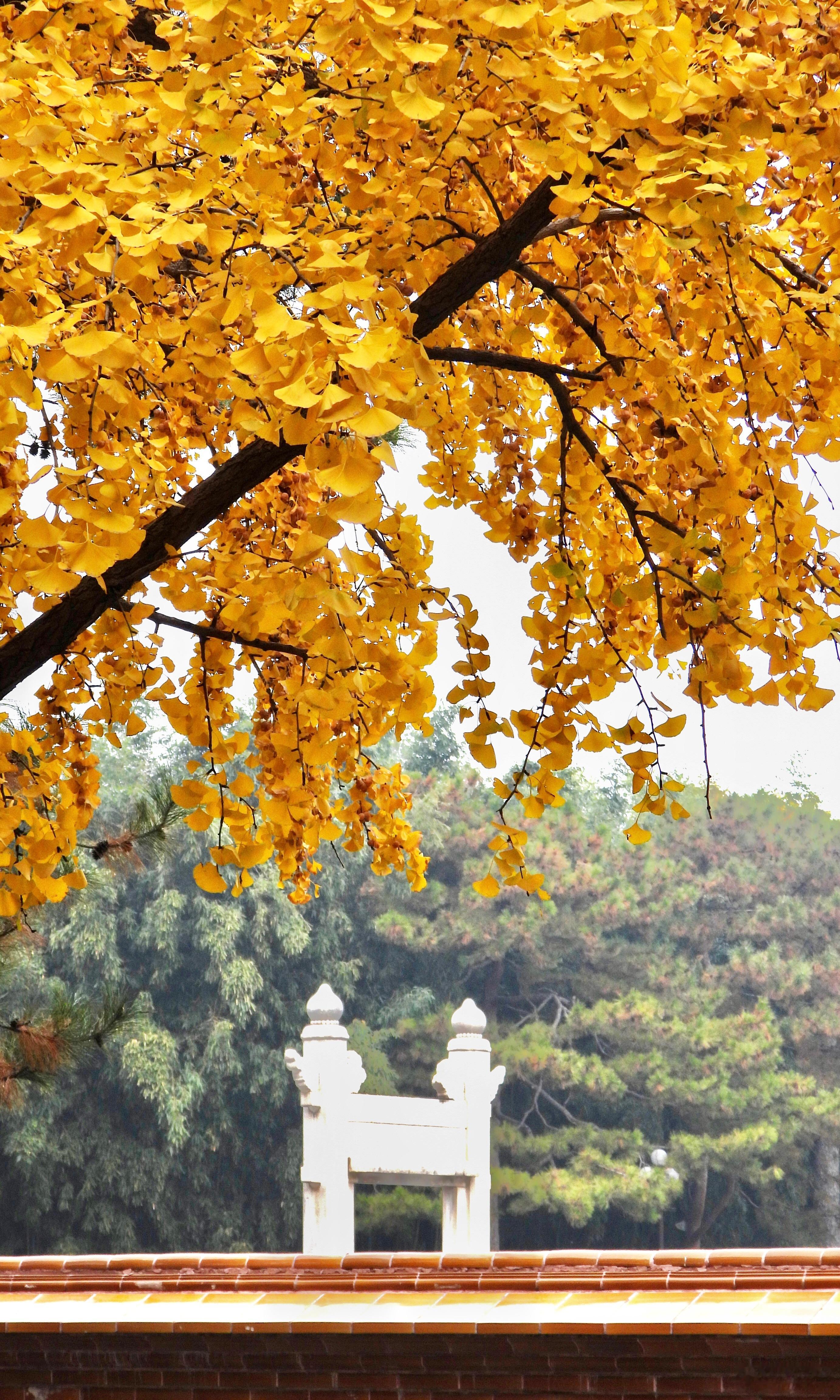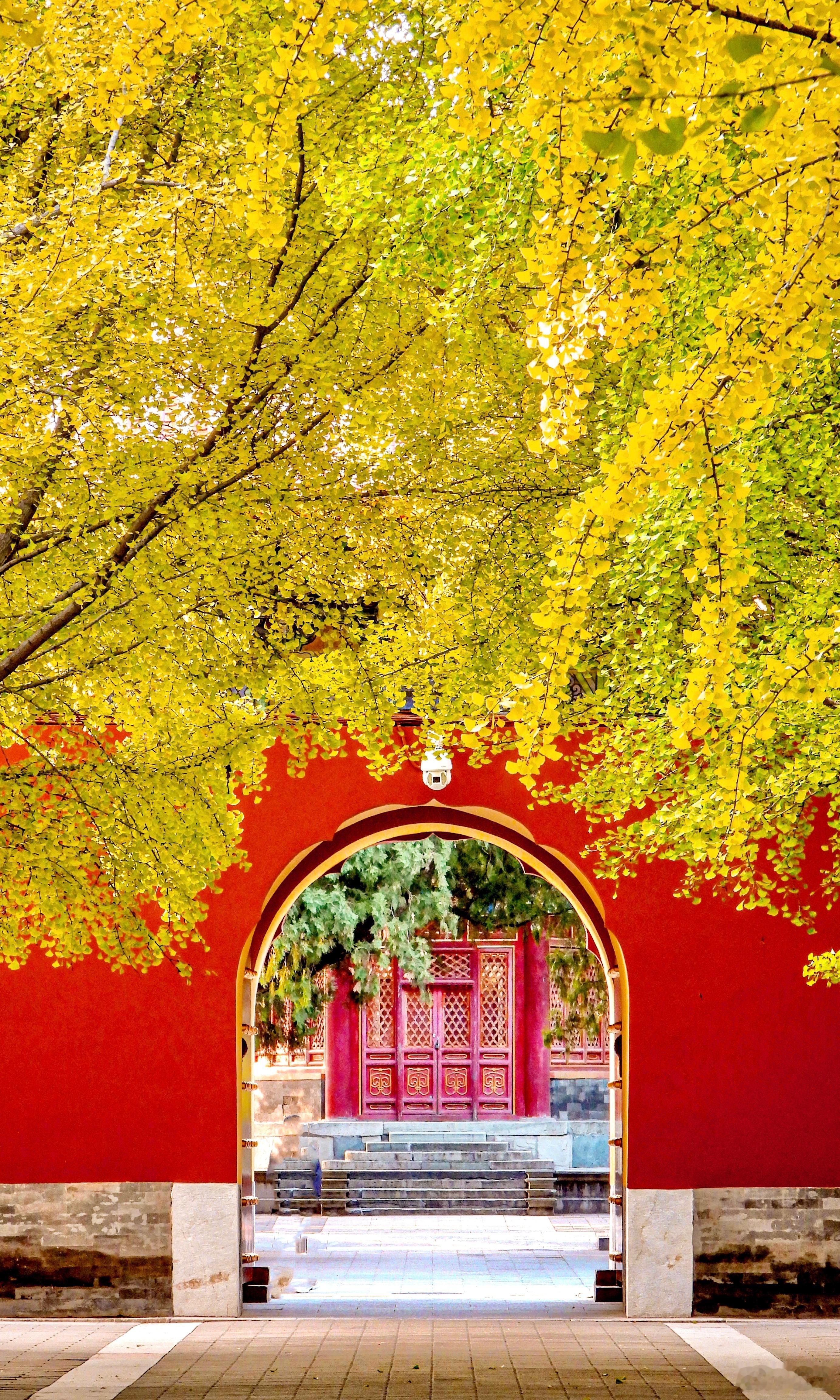 【北京中山公园】宫墙映日锁秋光,银杏凝金覆角廊。风过落英逐晓色,满园诗意满庭芳摄