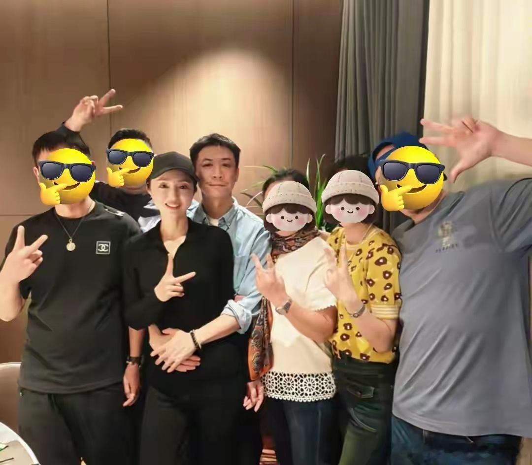 董璇张维伊一家与好友聚餐,张维伊搂着董璇拍照,看起来很般配