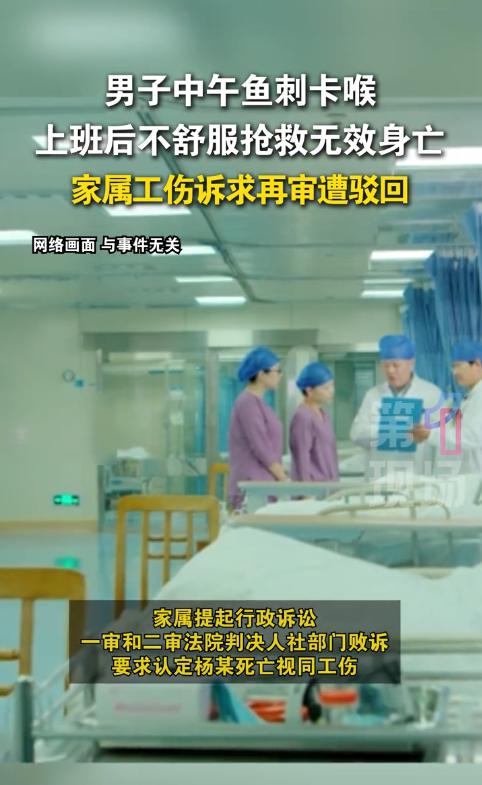 广西桂林,一男子中午在家吃饭时,不慎被鱼刺卡住喉咙,他自行处理后,下午回到单位上班,期间男子感觉喉咙不舒服,就去医院检查,结果途中病情恶化死亡!家属认为这属于工伤,但是却被拒。网友:简直是飞来横祸! 11月12号报道,一场围绕“鱼刺”的工伤认定纠纷,在广西三级法院的审理中反复拉锯,最终给出的答案,为同类事件划出了清晰的认定边界。   这起事件的主人公杨某,是全州县咸水镇政府的一名在编人员,2022年4月24日的那场意外,让一个普通家庭陷入悲痛,也让工伤认定的核心争议浮出水面。   当天是五一调班后的工作日,杨某中午的时候吃了鱼,他感觉咽喉有异物卡滞,凭着经验对着镜子自行将鱼刺取出。   当时除了轻微不适,并无其他异常,他便按时返回单位。   没有想到,下午的工作刚开始不久,他咽喉的痛感开始加剧。   他先前往镇上的私人诊所,接诊的李某某检查后发现伤情比想象中严重,建议他赶紧转到大医院。   杨某随即联系妻子,告知其身体发冷、状况不佳的情况。   下午4点半的时候,夫妻二人抵达兴安界首的一家医院就诊,谁也没料到,病情会突然急转直下。   傍晚7点多,经过数小时抢救,医生最终无奈宣布杨某死亡。   广西金桂司法鉴定中心的结论揭开了死亡真相,鱼刺造成的咽喉刺伤,引发急性喉头水肿、出血及炎症,最终堵塞呼吸道导致缺氧窒息。   鉴定报告还分析,杨某自行处理鱼刺的方式不当,自身患有糖尿病,再加上就医前的精神紧张,多重因素让病情在短时间内急剧恶化。   悲痛过后,家属向当地人社部门提交工伤认定申请,但是被拒绝了,争议就此引爆。   家属的核心诉求很明确,杨某出现明显不适并最终就医,全程都发生在工作时间内,且从就诊到死亡未超过48小时,完全符合视同工伤的关键要件。   在他们看来,鱼刺刺伤只是诱因,急性喉头水肿属于在工作岗位上突发的急症,两者不能混为一谈。   人社部门的反驳却也很有道理,导致死亡的源头是中午就餐时的鱼刺刺伤,该行为发生在非工作场所和非工作时段,本质上属于生活意外,与杨某的工作没有直接关联。   更关键的是,杨某并非从工作岗位直接前往医院,不符合视同工伤中“径直送医”的隐性要求,因此不具备认定资格。   两级法院的一审、二审判决都认为,现在的证据能证明杨某的急症是在工作时段内突发并加重的,在人社部门无法提供反证的情况下,应认定符合视同工伤情形,因此支持家属诉求。   广西高院的再审判决,彻底厘清了事件的因果脉络。   法官在审理中强调,整个事件是完整的连续过程,不能割裂看待,中午卡刺是起因,下午不适是症状延续,就医死亡是最终结果,三者环环相扣。   杨某下午的不适并非独立的“突发疾病”,而是前期生活意外的自然发展,与工作没有直接因果关系。据此,高院最终撤销前两审判决,驳回了家属的诉求。   这起纠纷的核心争议,其实是工伤认定中“时间优先”与“因果优先”的博弈。   类似案例在近年并不少见,2019至2023年间,有多起员工午餐后突发过敏等急症,即便死亡发生在工作时段,最终都因“病因源于生活行为”未被认定为工伤。   广西高院的判决,为这类争议提供了关键参照标准,工伤认定不能只看某个时间节点的状态,必须追溯完整的因果链条。   只有当急症的发生与工作存在直接关联,或确实属于工作时段突发的独立疾病时,才能纳入认定范围。   若病因源于非工作场景的生活行为,即便症状在工作中显现,也不能机械套用视同工伤条款。   不少网友在了解事件后,都感慨这是难以预料的“飞来横祸”。   从健康角度来说,这起悲剧也敲响了警钟,每年因鱼刺卡喉引发急性喉头水肿的病例有上千起,虽致死率仅0.1%至0.2%,但自行处理极易加重伤情,及时就医才是正确选择。   而这场纠纷留下的,不仅是对生命的惋惜,更让公众清晰认识到,工伤认定的核心是“工作关联”,守住这一边界,才能既保障职工权益,又维护制度的公平性。