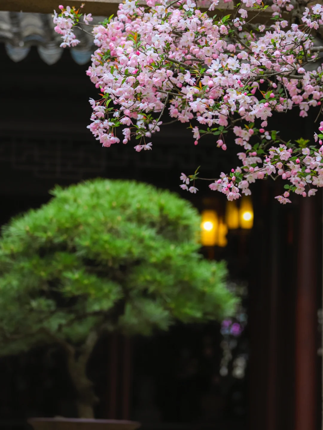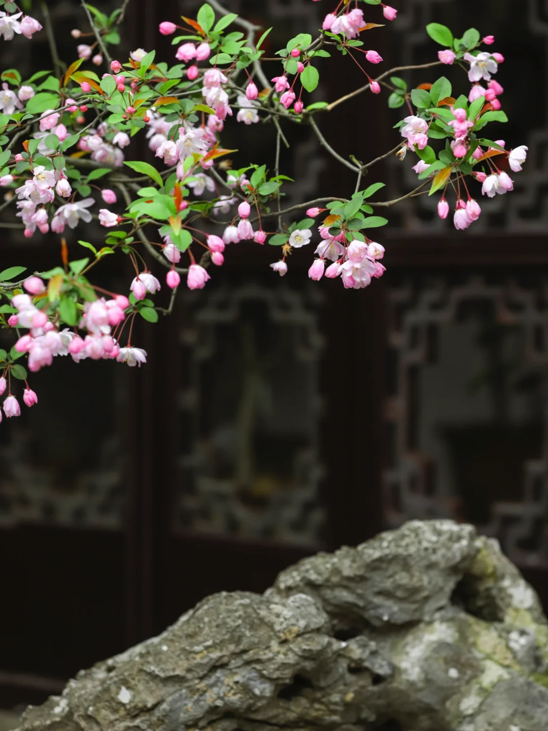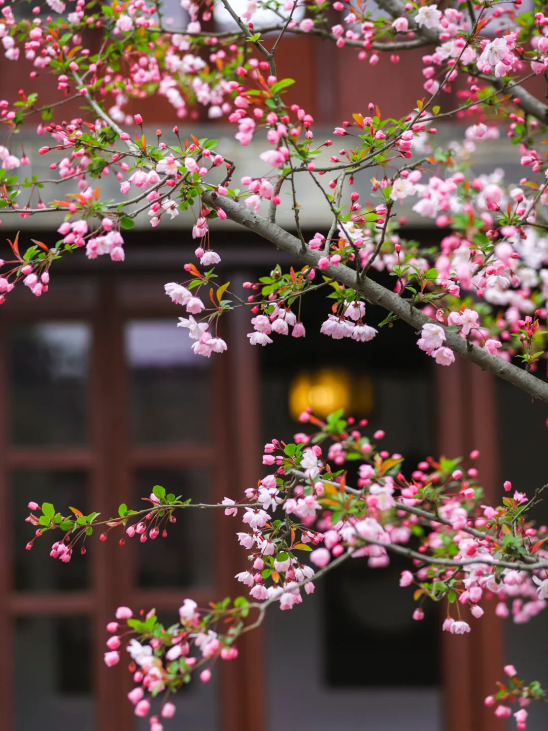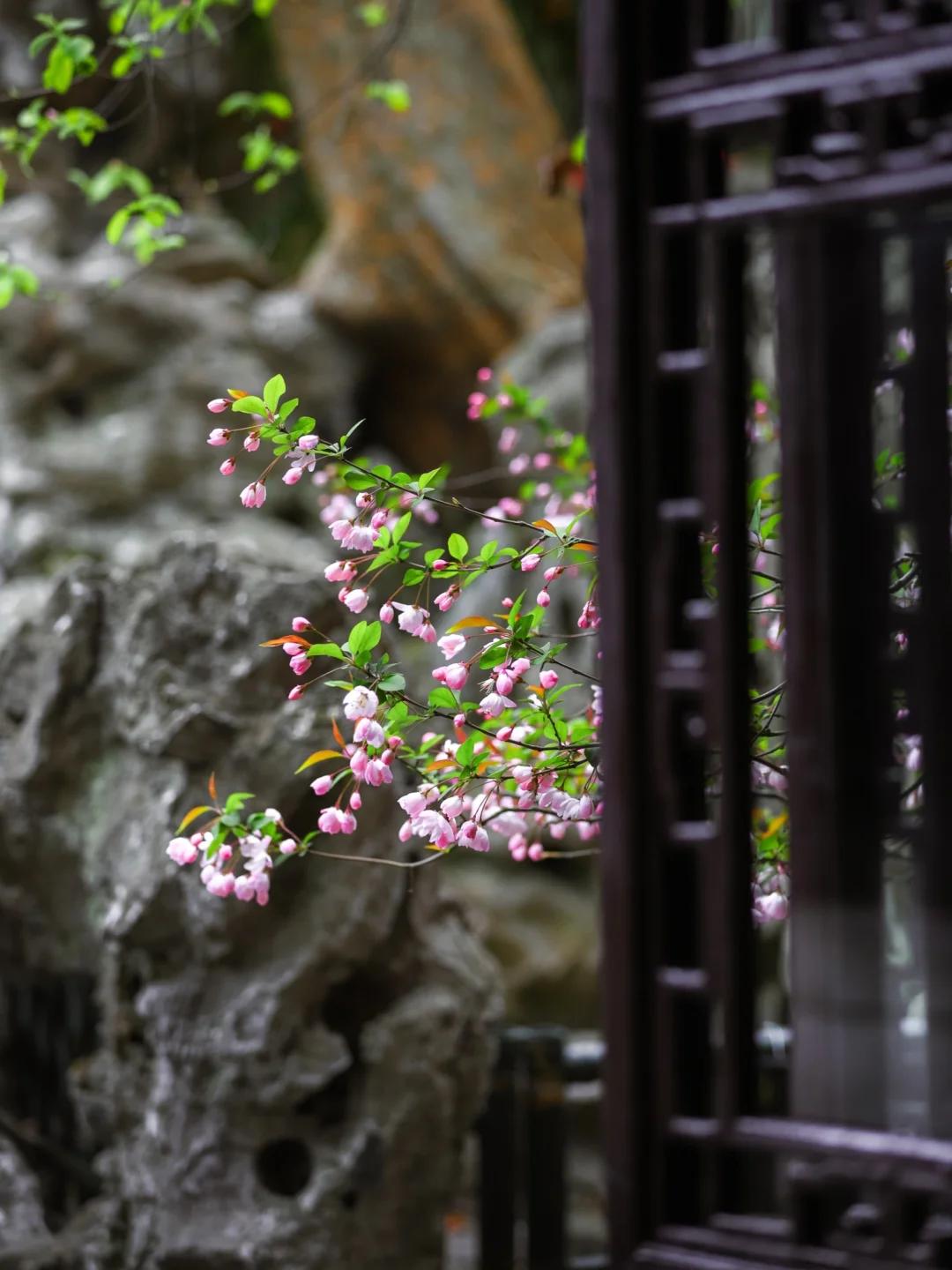 风过留园,海棠低语。 青石斑驳处,胭脂红褪作烟霞色, 枝叶漫卷间,春露凝成翡翠光。 回廊尽头的花影摇曳着宋词平仄 碎金般的暮色里, 一季春色悄然瘦去。 只剩游廊深处,暗香浮动的绿罗裙。 . 📍苏州留园 📸2024.3.26 . .