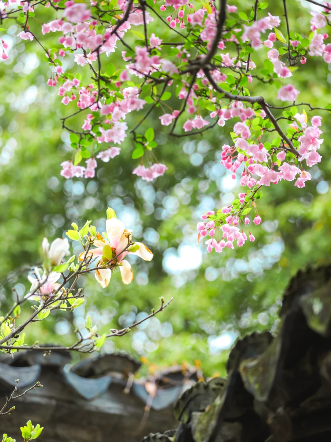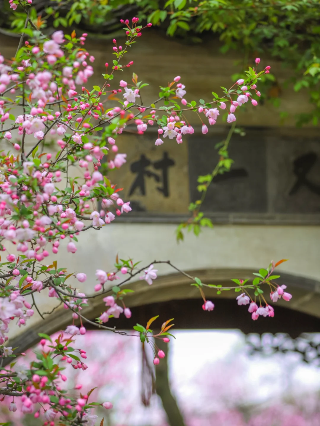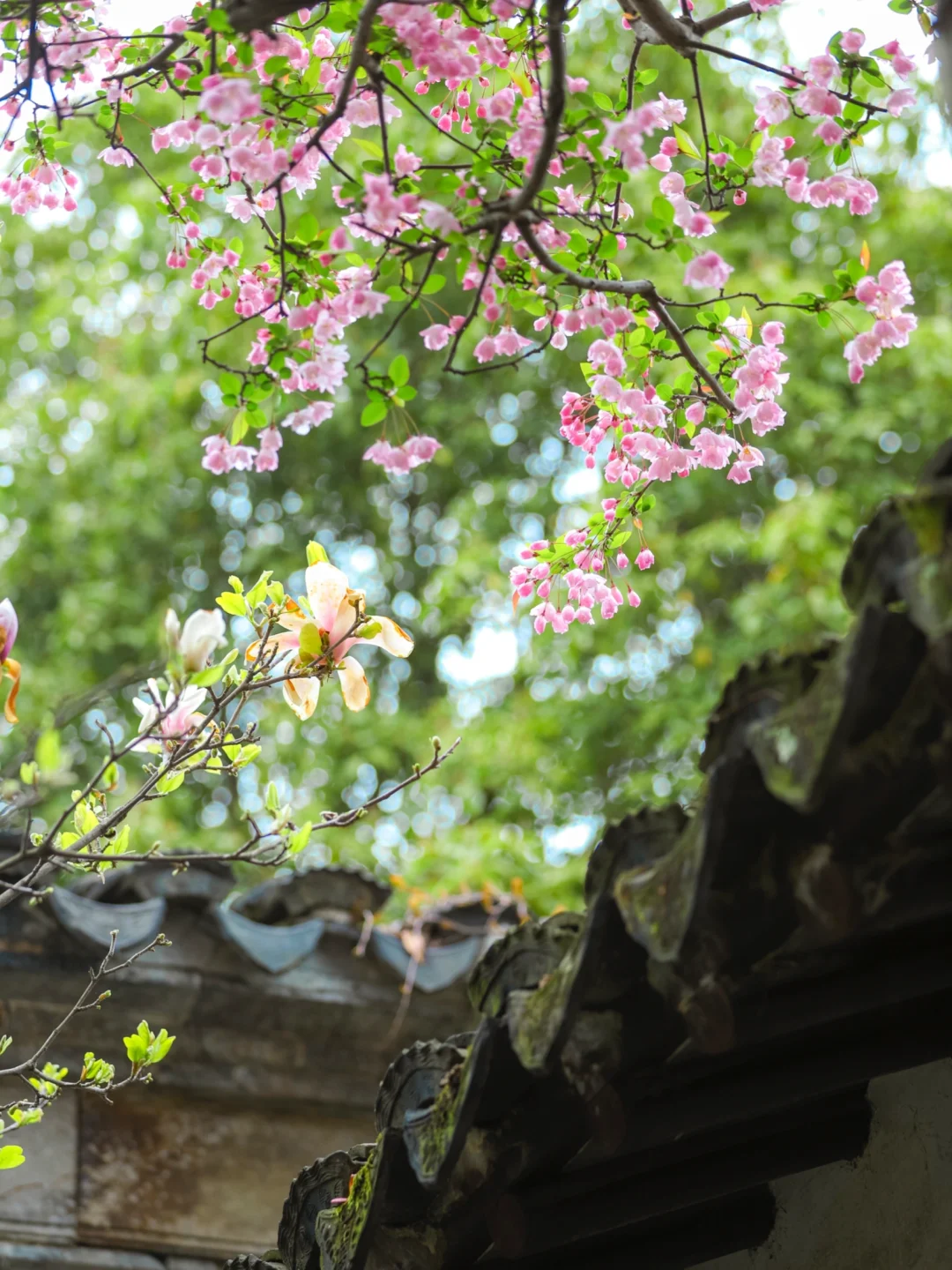 风过留园,海棠低语。 青石斑驳处,胭脂红褪作烟霞色, 枝叶漫卷间,春露凝成翡翠光。 回廊尽头的花影摇曳着宋词平仄 碎金般的暮色里, 一季春色悄然瘦去。 只剩游廊深处,暗香浮动的绿罗裙。 . 📍苏州留园 📸2024.3.26 . .