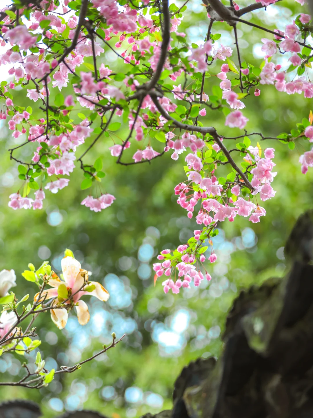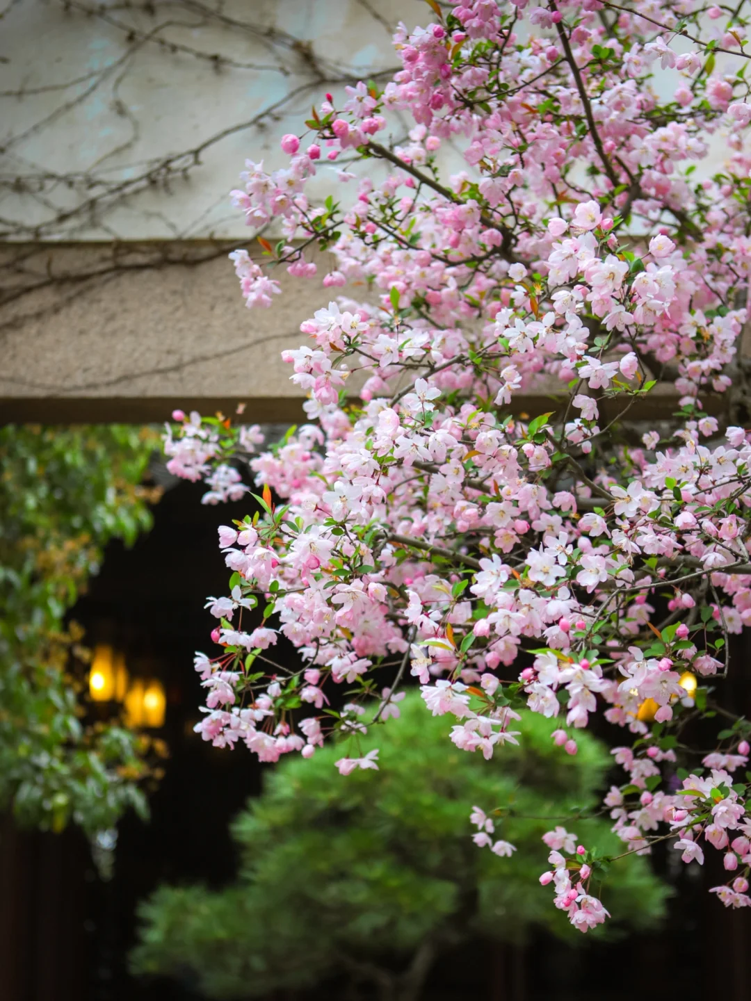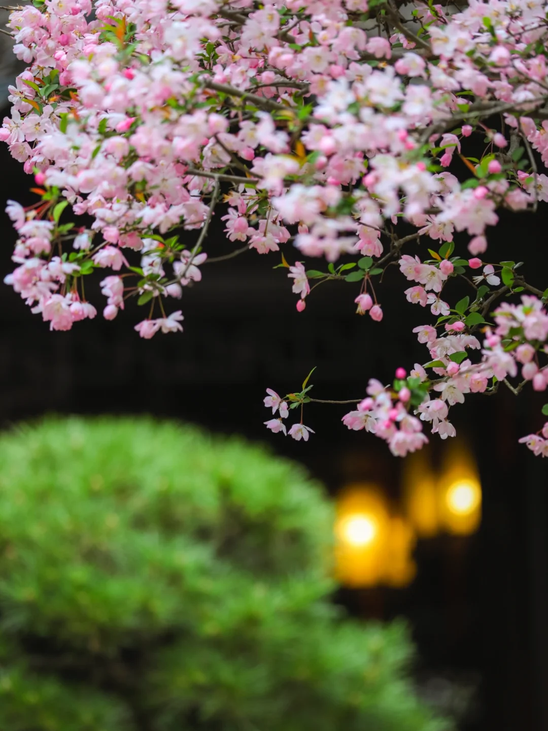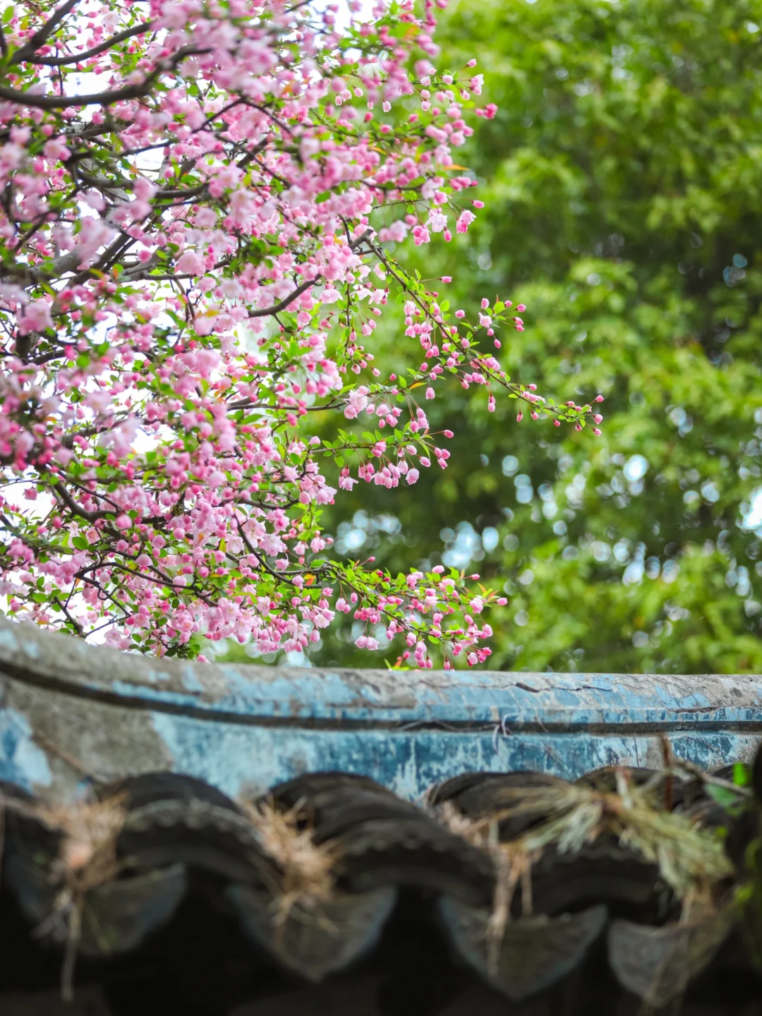 风过留园,海棠低语。 青石斑驳处,胭脂红褪作烟霞色, 枝叶漫卷间,春露凝成翡翠光。 回廊尽头的花影摇曳着宋词平仄 碎金般的暮色里, 一季春色悄然瘦去。 只剩游廊深处,暗香浮动的绿罗裙。 . 📍苏州留园 📸2024.3.26 . .