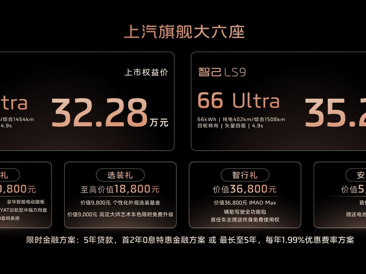 智己LS9上市,售价33.28万元-36.28万元,12月3日(含)前可享权益价32.28万元-35.28万元。新车搭载1.5T+双电机的增程系统,标续车型搭载最大功率380kW,峰值扭矩670N·m,CLTC纯电续航320km,综合续航1454km;长续航车型搭载最大功率390kW,峰值扭矩670N·m,CLTC纯电续航402km,综合续航1508km。【来自懂车帝车友圈】