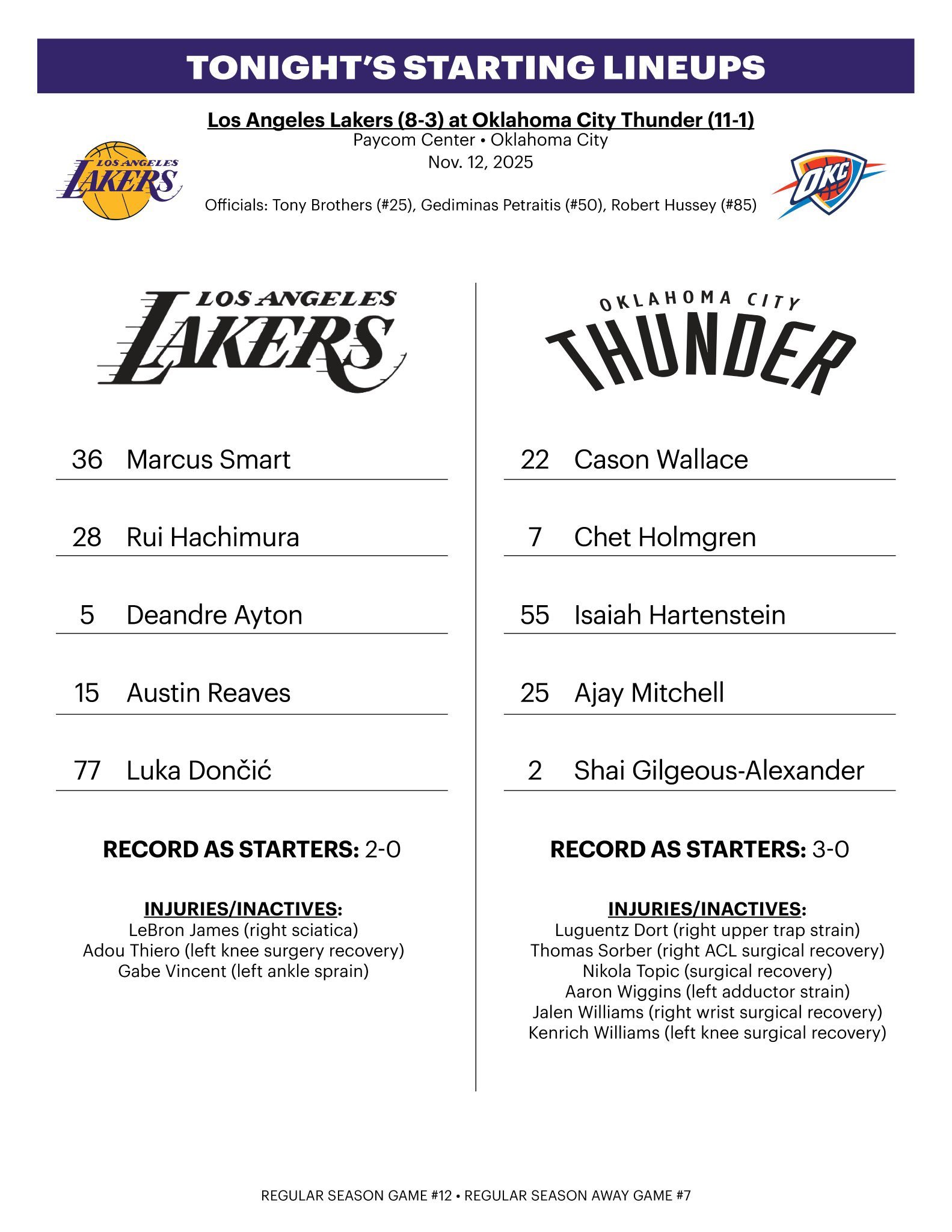 湖人今日首发,八村,斯玛特,里夫斯,卢卡和艾顿。
