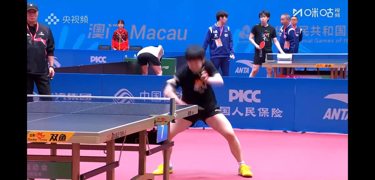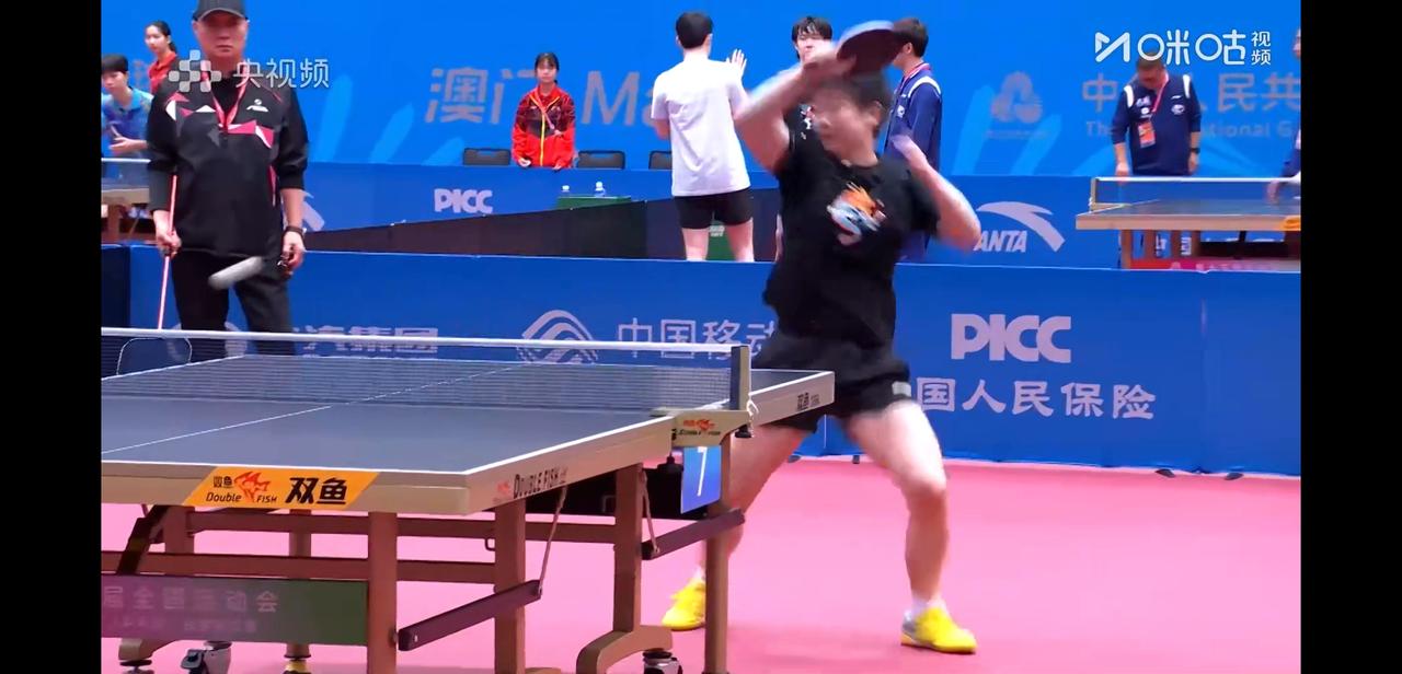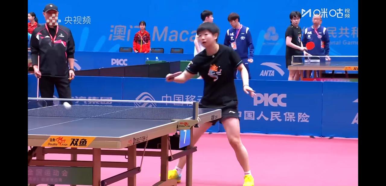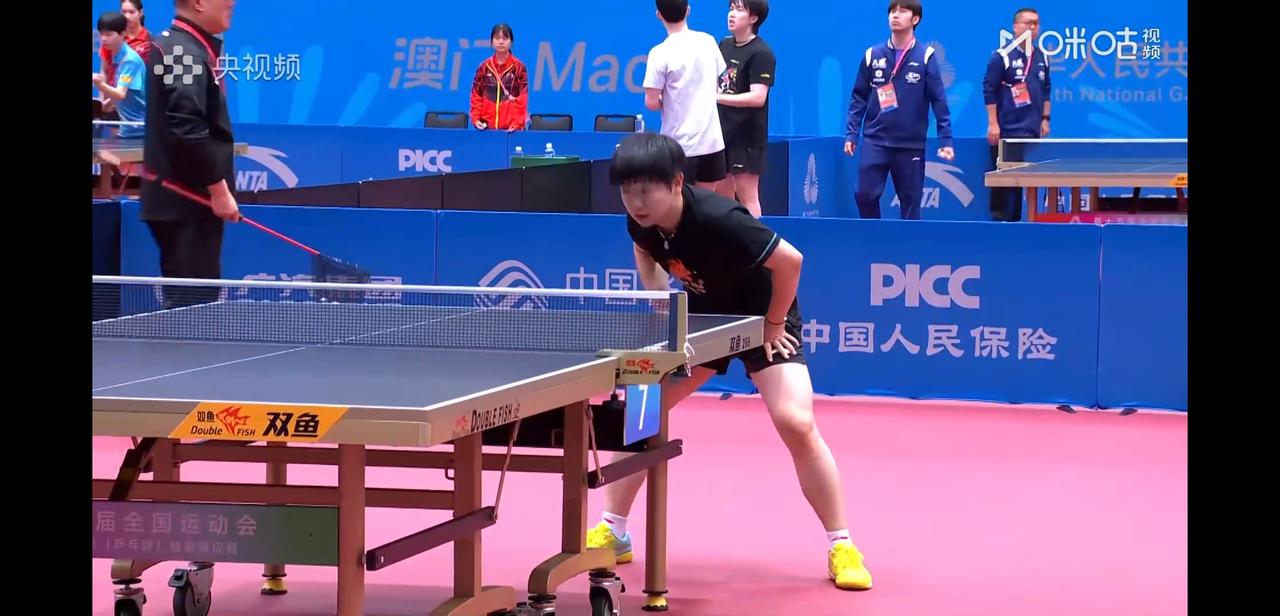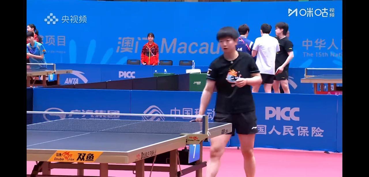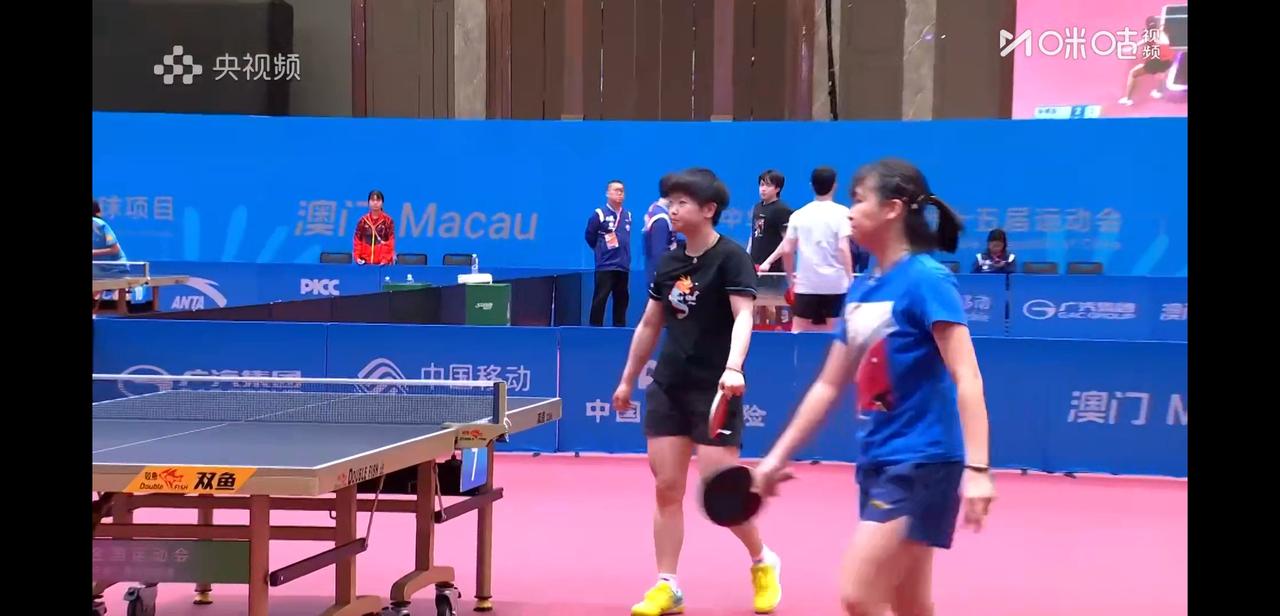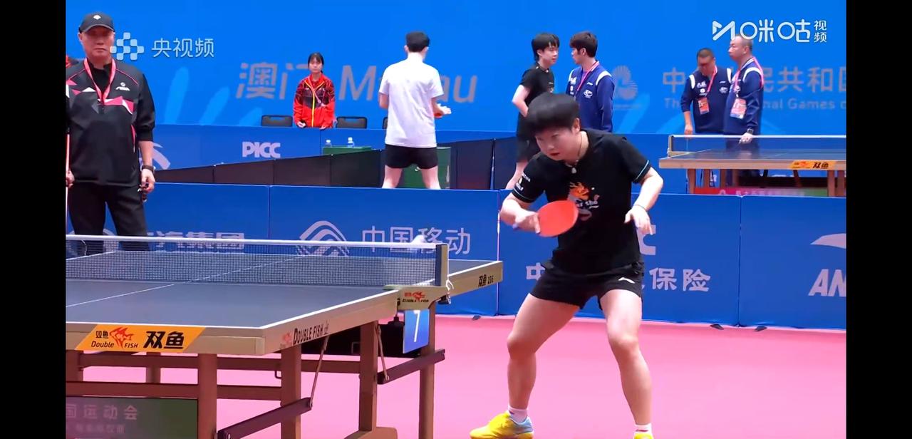 全运会乒乓球项目热身场的摄像头太会捕捉了, 刚才打开热身视频, 孙颖莎去哪里摄像头追到哪里, 莎莎打球中的C语言也给录上了。 后面还有北京队的在训练, 王楚钦、闫安他们, 有时候摄像头还会拉近。 你们好好训练, 我要去看比赛啦, 蒯曼第一局11:5陈梦。