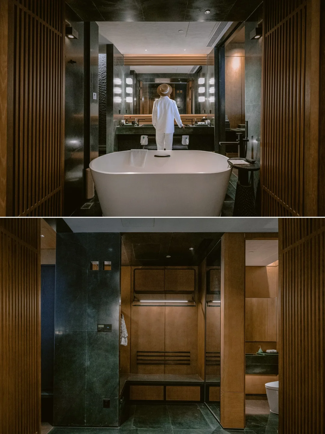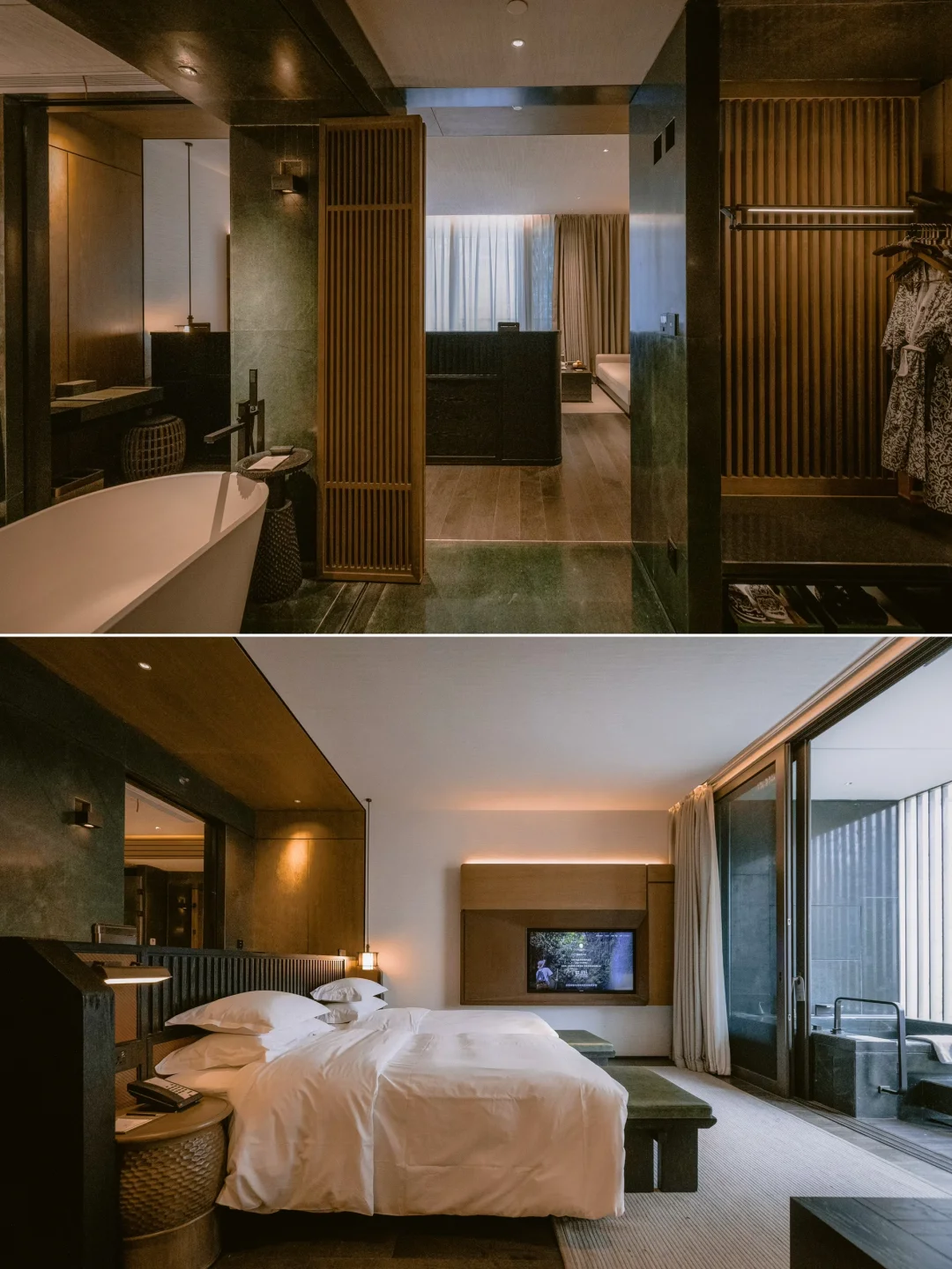 每间房自带温泉泡池,引入汤山真温泉水!泡汤时直面崖壁奇观,夜晚灯光勾勒出矿坑轮廓,边放松边赏景,度假感直接拉满~