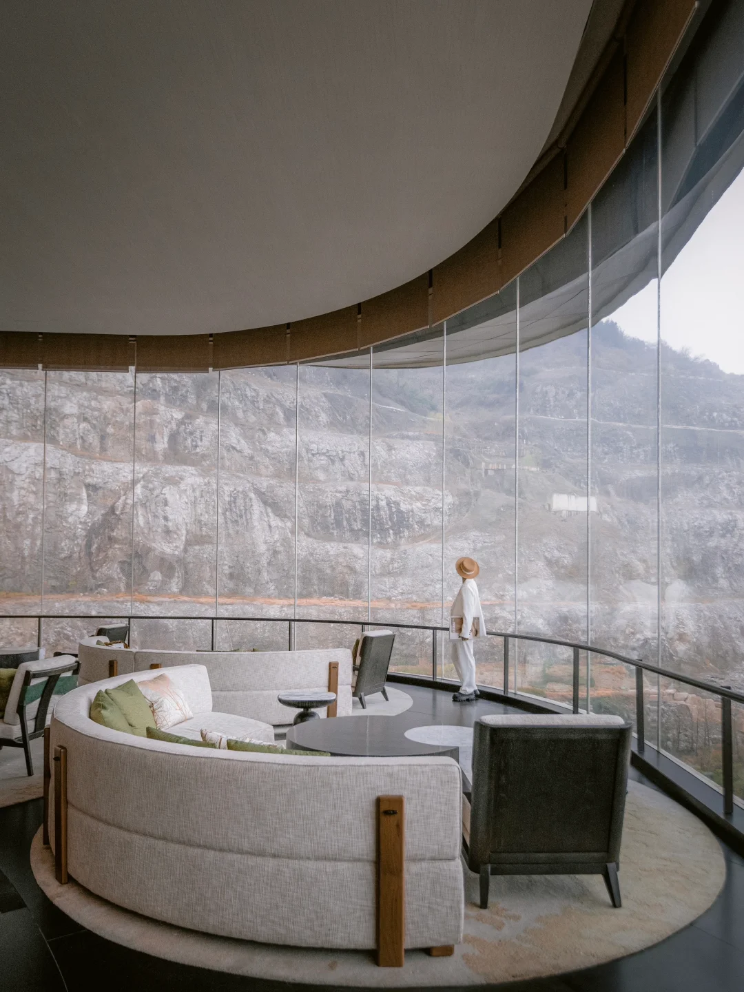 大堂的旋转楼梯绝对是C位!光影交错时随手一拍都是大片,楼梯线条与矿谷粗犷背景形成反差,氛围感直接拉满📸