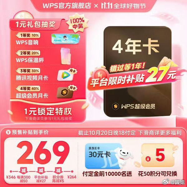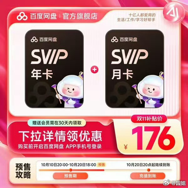 会员活动最后一天,快快补仓了,一年一次别错过~微博会员年卡50元:微博SVIP会员119元:爱奇艺黄金会员年卡119元:爱奇艺白金会员年卡218元:腾讯视频SVIP年卡248元:哔哩哔哩大会员年卡108元:哔哩哔哩超级大会员年卡128元:百度网盘SVIP年卡176元:剪映VIP会员年卡107元:剪映SVIP年卡288:WPS超级会员4年卡339元:WPS超级大会员3年卡428:京东PLUS会员年卡90元: