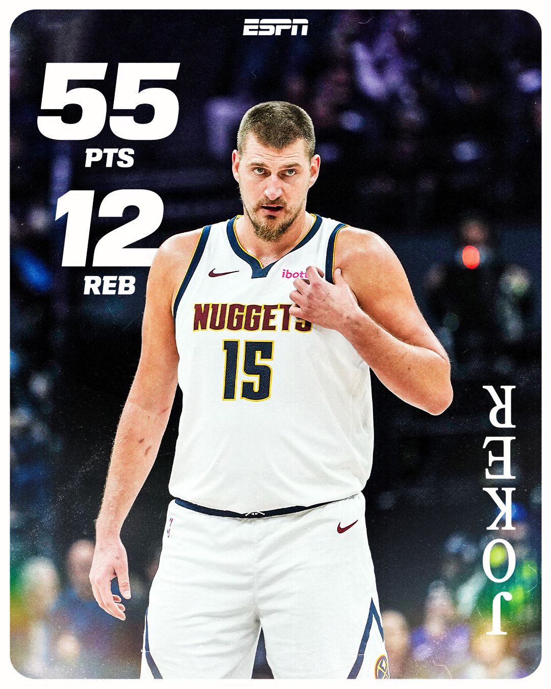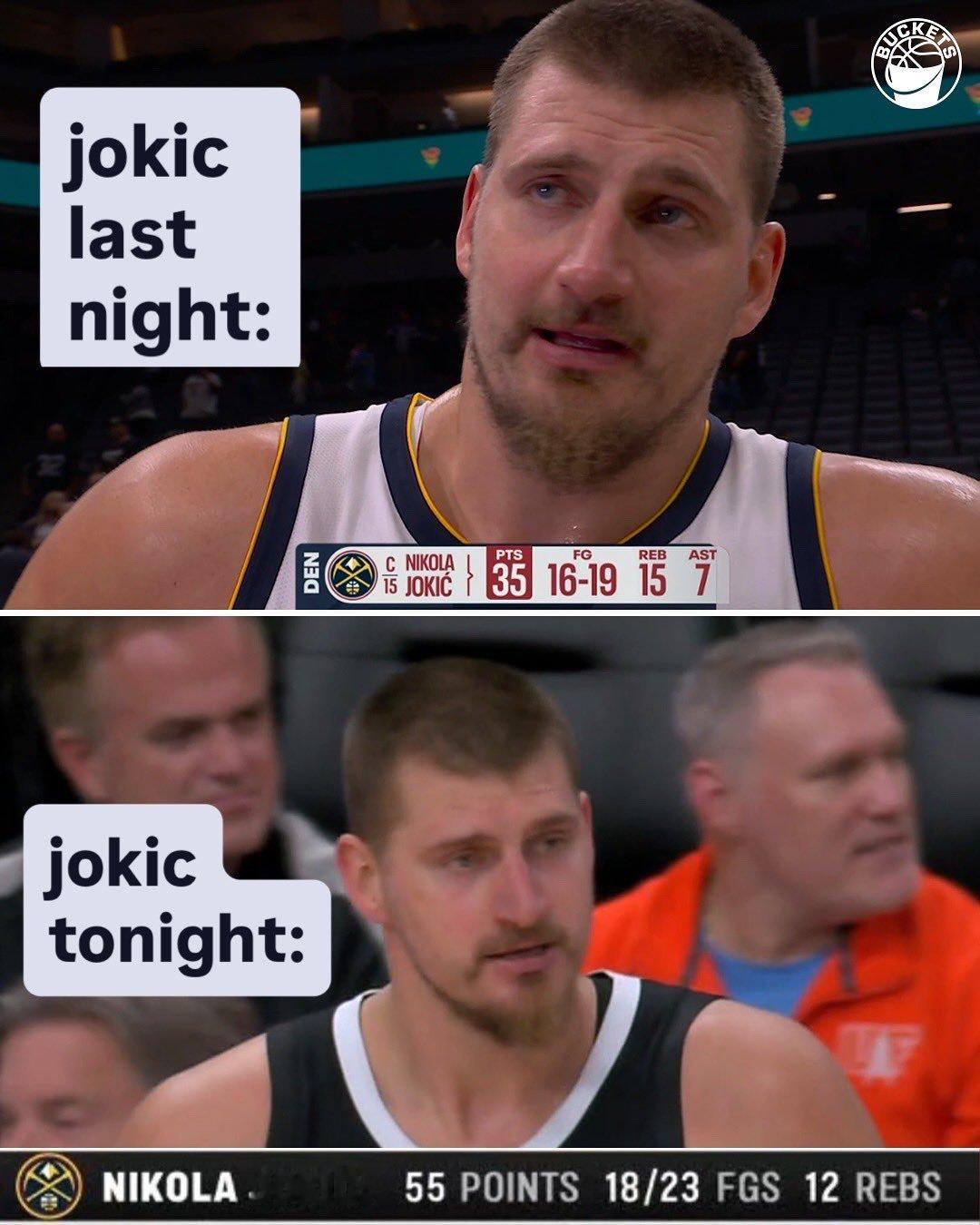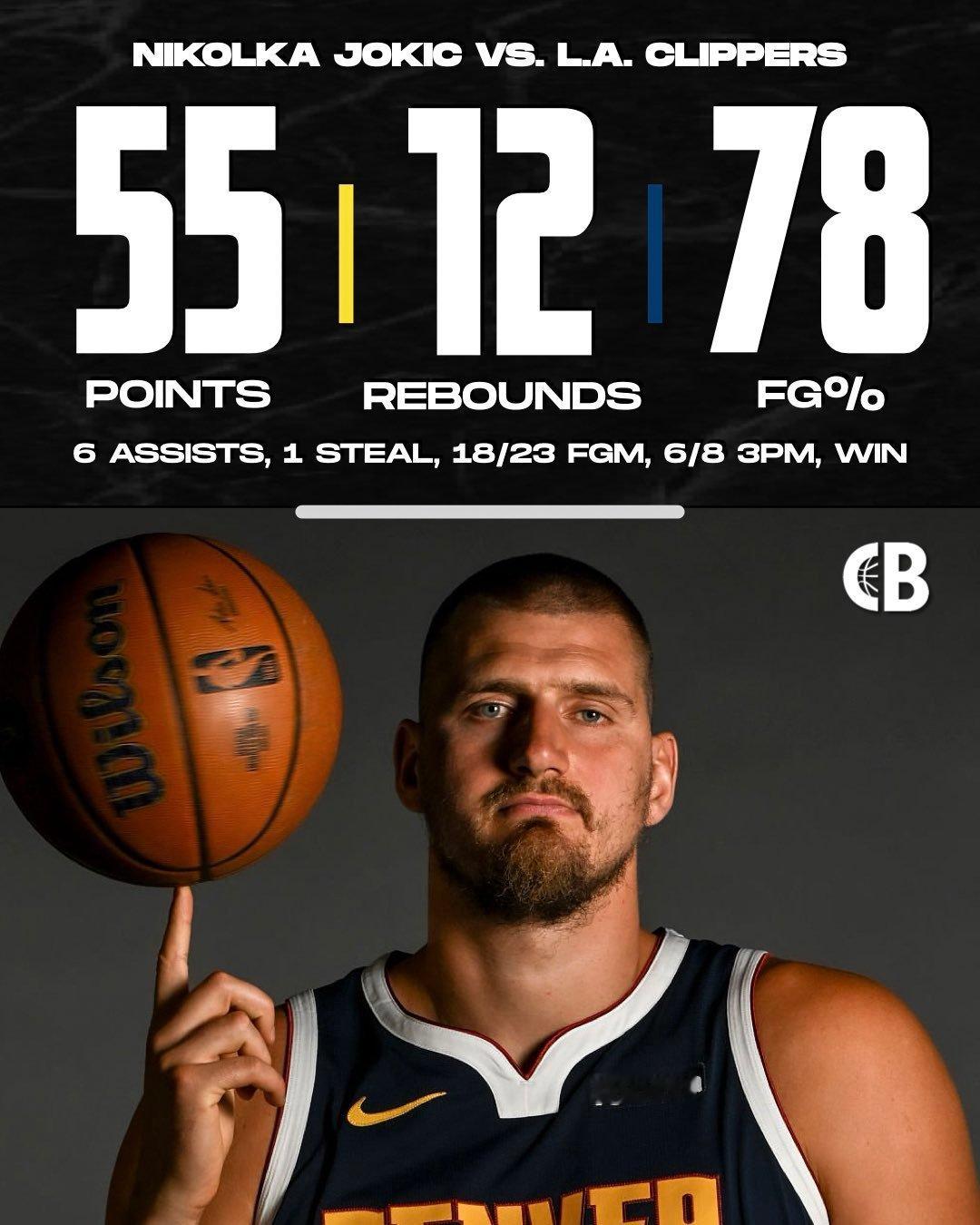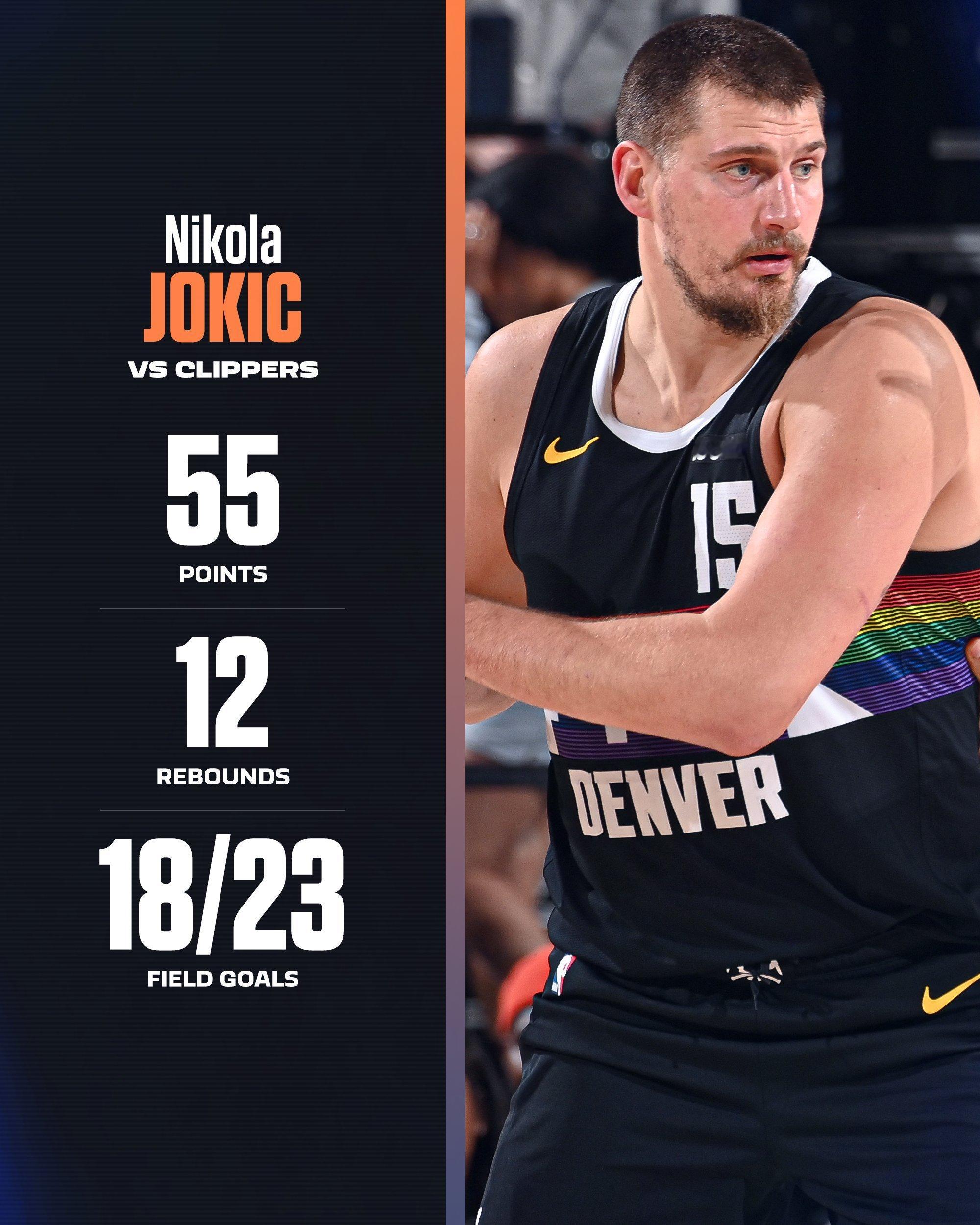 什么水平??今天的约基奇:——出战33分钟——投篮23中18,三分6中5,罚球16中14——得到55分12篮板6助攻——第一节单节25分,第三节单节19分——三节52分,全场正负值+28现役第一人,绝对的现役第一人,太疯狂了!!
