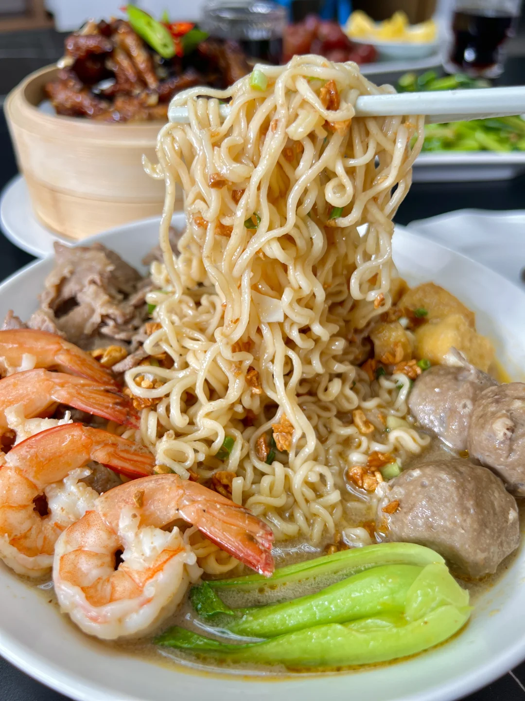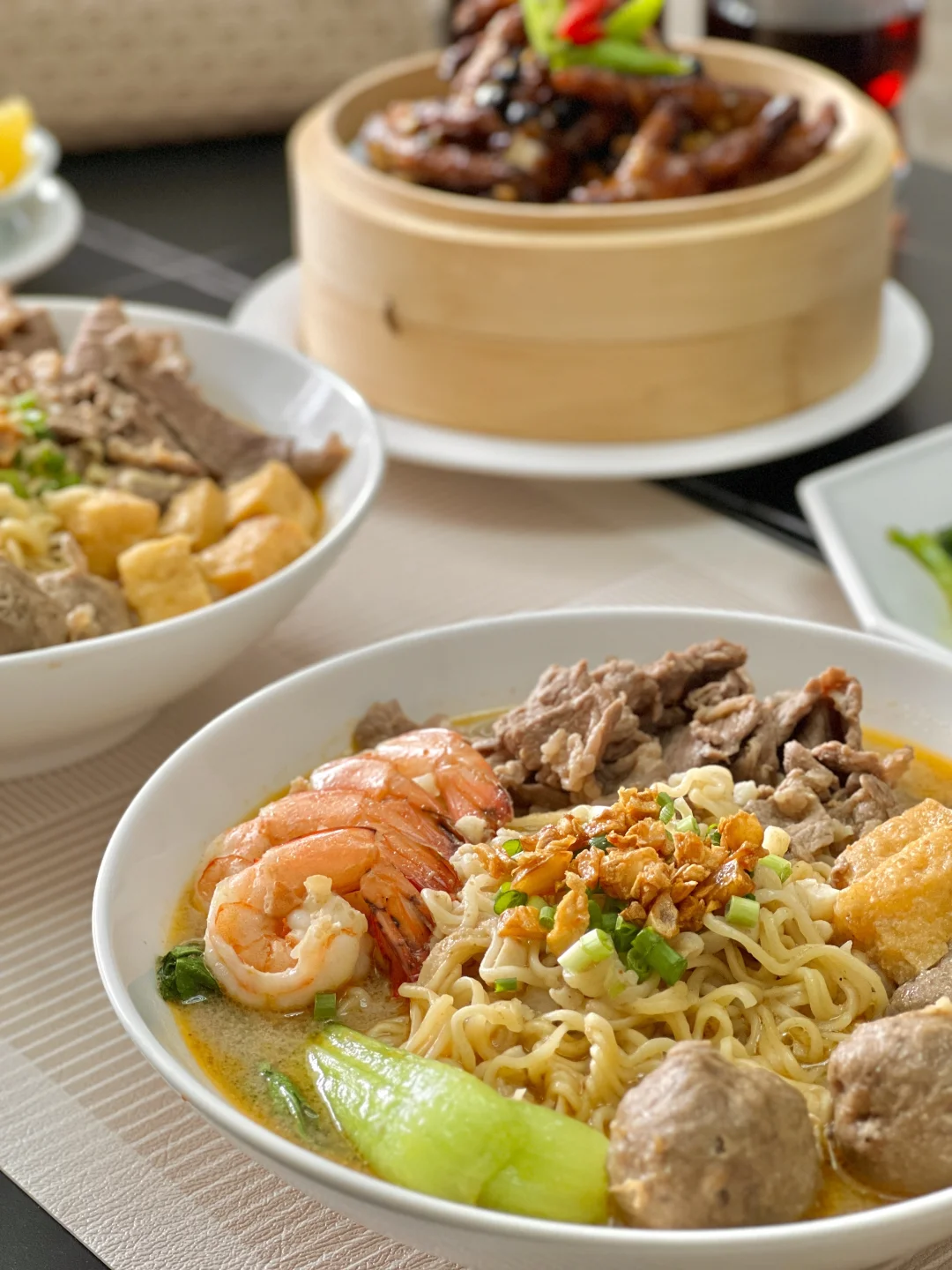 说出来大家可能不信,其实很多菜我都是第一次做,现学现做,所以每次吃的时候也像开盲盒,不知道效果怎么样[偷笑R]比如今天的沙茶面就是第一次做~结果真的好吃!而且很好做,灵魂是炸蒜,放上去一起吃,超香的[派对R] 【牛肉沙茶面】 【豉汁凤爪】 【清炒菜心】