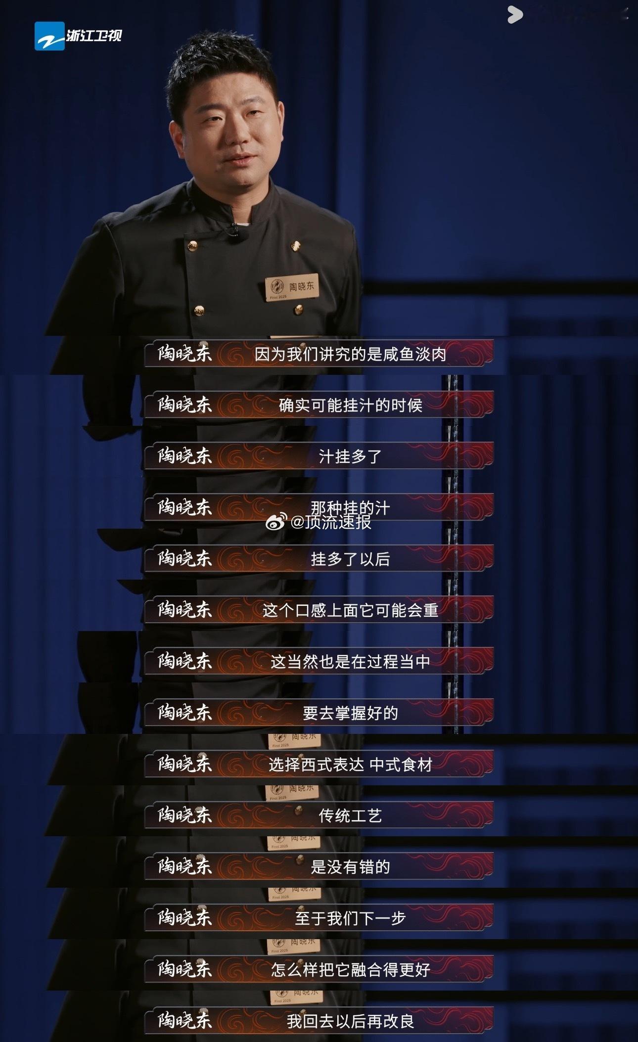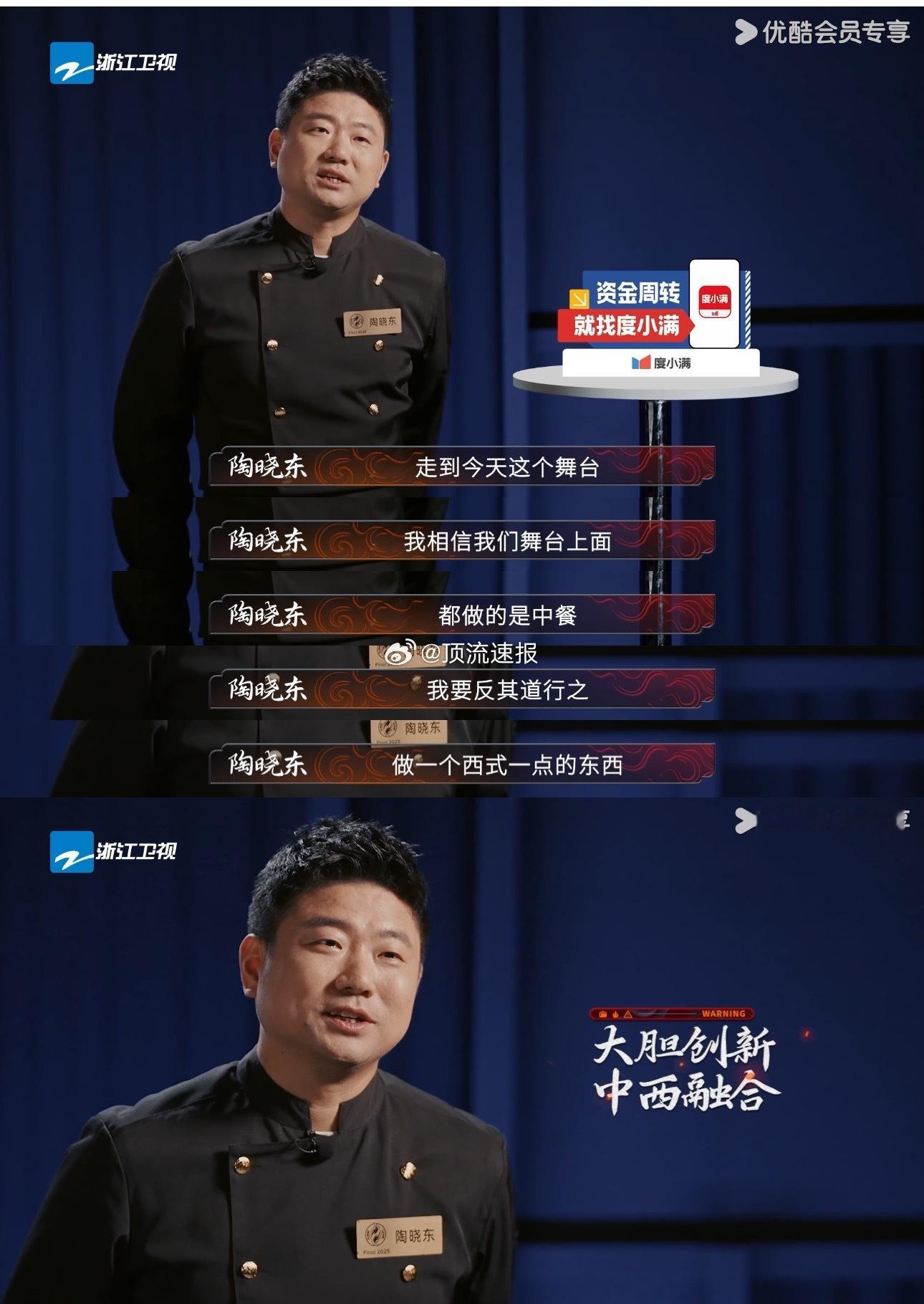 看了百厨大战的总决赛没想到我最看好的陶师傅先被淘汰了!一直在期待两位绝对实力的星厨能在最后大战pk争夺总冠军,徐孝洪对味型的极致拿捏和陶晓东稳如泰山的技艺如果能单独碰一碰绝对是总决赛最大的看点!而且节目内外两位大师也一直在交流共通,惺惺相惜一起散步讨论厨艺,虽然最后徐师傅的冠军也是实至名归但陶晓东居然三强都没进真的太可惜了!回想起文思豆腐的精细、金汤狮子头配花格窗的雅致、爆改榴莲味常州麻糕的大胆创新、现场和面包包子的从容不迫,不敢想陶晓东要是拿到了最后一战的“独钓寒江”意境和主食材年糕能做出什么让人目瞪口呆的菜品!而且真的没想到最后和徐孝洪争冠军的是居然是出品一直中规中矩没什么出圈菜的秦卓男,唉!私心希望陶晓东老师下一季一定要返场大杀四方,根本看不够!