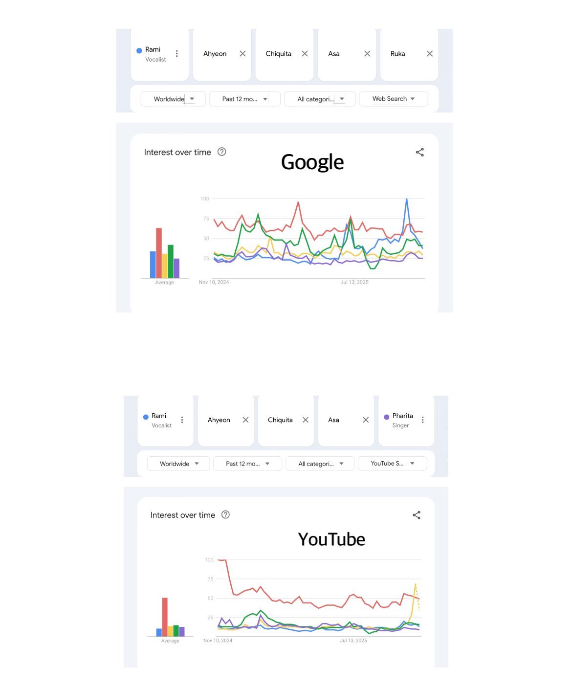 截至2025年目前,全球Google和YouTube上搜索量最高的BABYMONSTER成员:Google👇👑-AHYEONYouTube👇👑-AHYEON