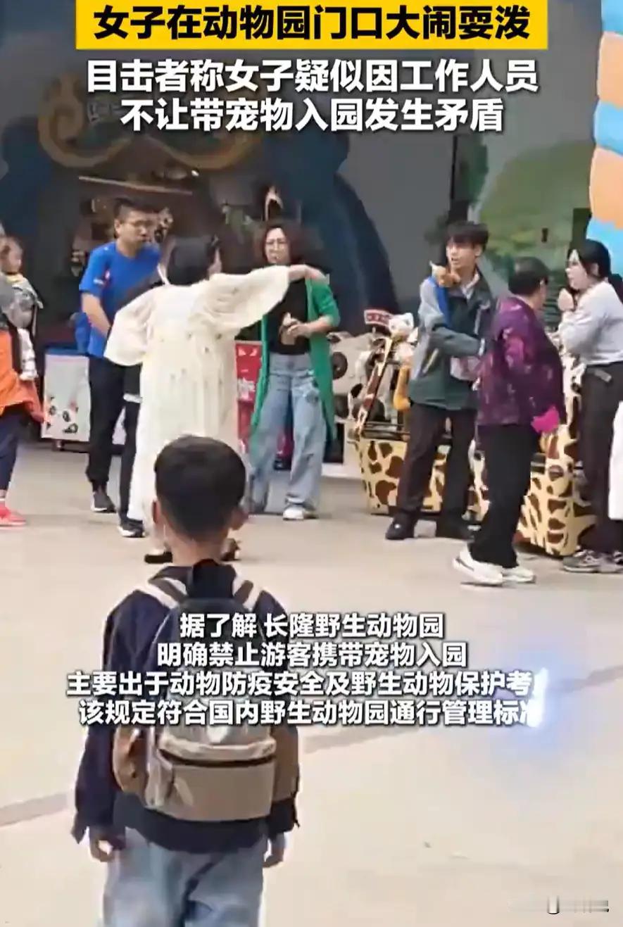 广东广州,一女子带着狗想要进入长隆野生动物园,结果进门时被工作人员拒绝,理由是宠