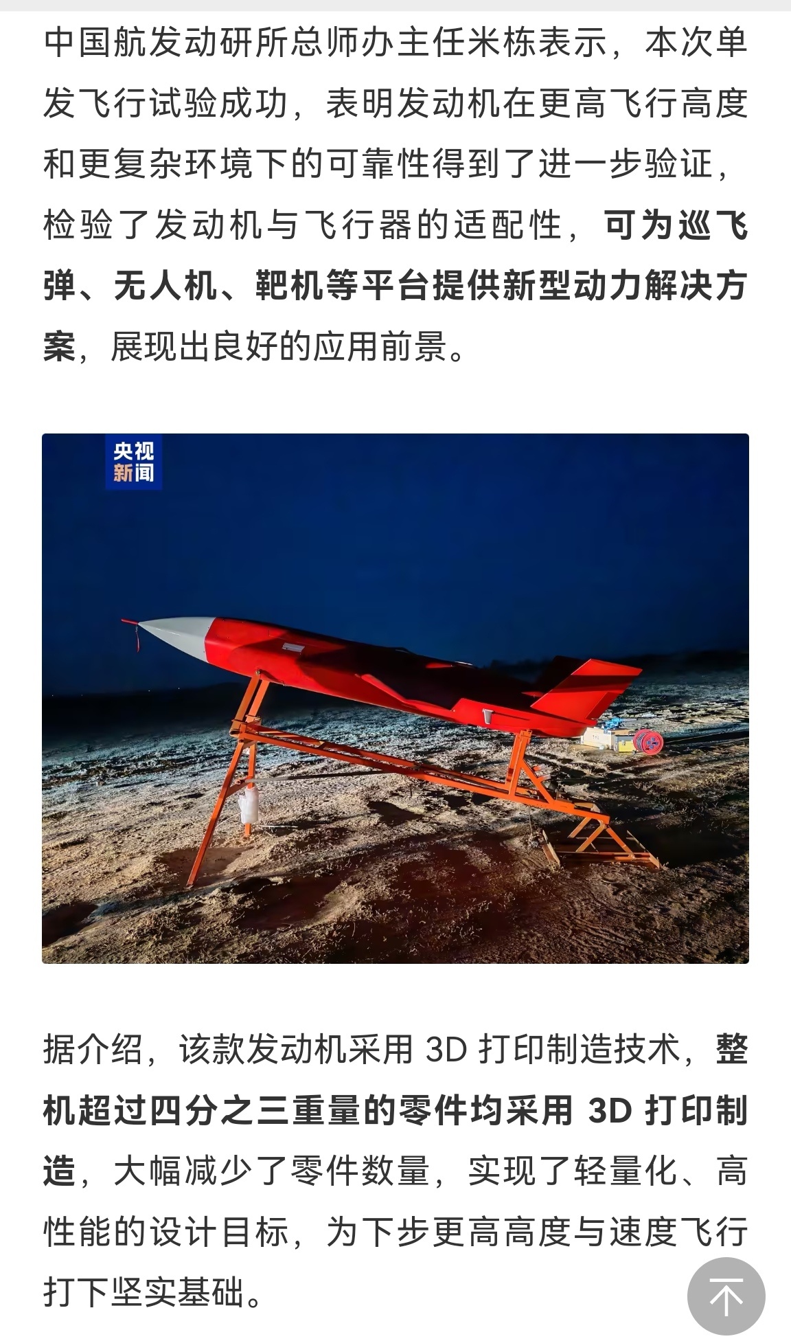 🔻我国3D打印极简廉价涡喷发动机完成试验弹实飞测试,速度0.75马赫,6000米高度飞行超过450公里距离。🔻哈哈,未来旁边有几个岛可能要吃几万几十万发这种发动机驱动的巡航导弹,我不说是谁。