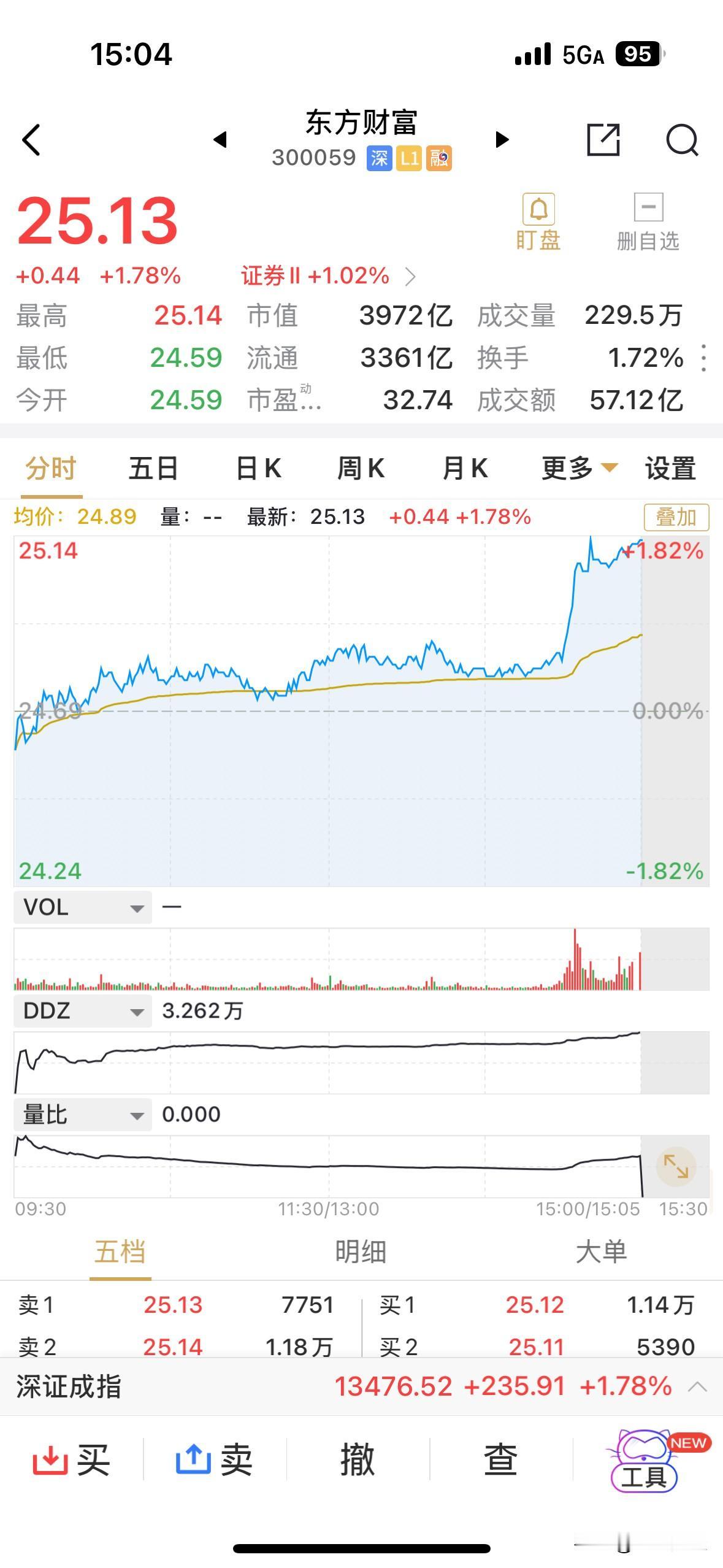 东方财富尾盘有所放量,收涨1.78%,总算领先板块1%的涨幅了,而券商板块1%的升幅也助力沪指创下4030点的十年新高,将前高4025点悄然踩在脚下。 而另一个龙头中信证券仿佛中了魔咒似的,而小涨0.62%,实在有失颜面,敢不敢太过分点,收平? 前面说过,东方财富、中信证券以目前的成交水平,不足以支撑其迅速收复前高,即使指数己经创了新高。 原因很多,券商不太想让涨,容易涨的过份,违背急涨急跌的原则。 而资金显然仍在科技板块中,目前撤出有限,所以也没办法回补券商龙头。 但该来的终究会来,券商板块显然是一块大的蛋糕,不可能就这么弃之了了! 乐呀财经