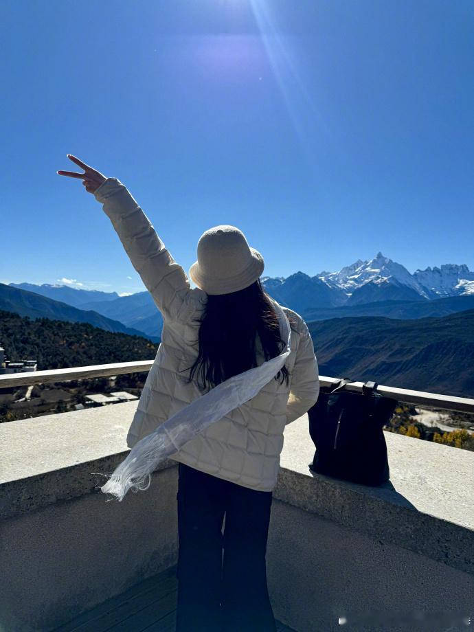 刘诗诗高马尾运动风出镜,与日照金山同框,侧颜与自然奇观交融,被赞 “画中仙子”。