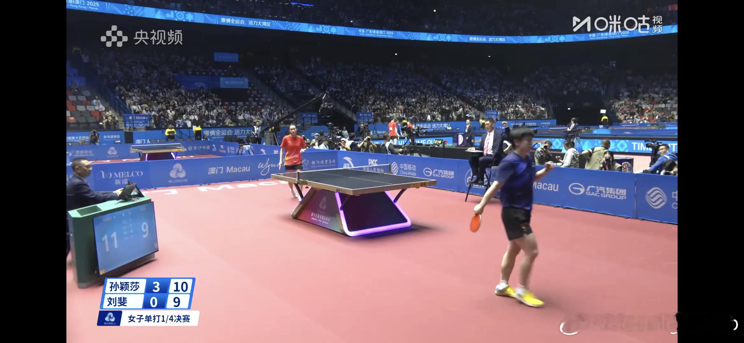 成年组女单1/4决赛:孙颖莎(河北)4比0刘斐(辽宁)【11:1,11:7,11:4,11:9】女单半决赛🆚朱雨玲(澳门)