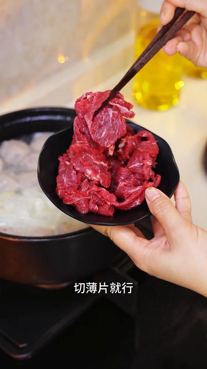 老话说:冬吃萝卜夏吃姜。天气这么冷,早上来一碗热腾腾的萝卜汤很舒服的。 ·萝卜我一般就是选瘦长的萝卜头,还是很新鲜的这一种。 ·起个砂锅,来热一下姜丝,用猪油来炒,萝卜煮出来汤会很白。 ·萝卜就切成丝,粗细个人喜欢,这个没有特别要求。 ·炒一炒把萝卜炒软了再放水。 冬天萝卜很脆甜的,我刚刚生吃了一根,一点辣味都没有,纯甜,所以这个汤小朋友也会很喜欢喝。 每次视频中出现牛肉丸,你们都要问我哪里买的?这个是汕头的牛肉丸,它的牛肉含量有90%,而且配料表也是很干净的,你们如果需要可以去小车车看一下。 这个汤是不是很白?这个时候就可以调味喝了,但是我还想再放些牛肉。牛肉就不用腌制,切薄片就行,放进来煮个十几秒就好了,这样子煮出来的牛肉才够嫩。趁这个时候可以一起调味,加盐、胡椒粉、芹菜碎,然后就可以趁热喝。 非常鲜的萝卜牛肉丸汤,天冷了很适合喝萝卜汤的,早上来上一碗,一天都状态满格。怕不够饱还可以再搭配个烤馒头片、蒸饺或者是面包什么的。这牛肉丸蘸着沙茶酱或者辣椒酱吃,实在太好吃了。 我是小坏,喜欢我的视频还请您点赞收藏哦。点赞关注收藏。