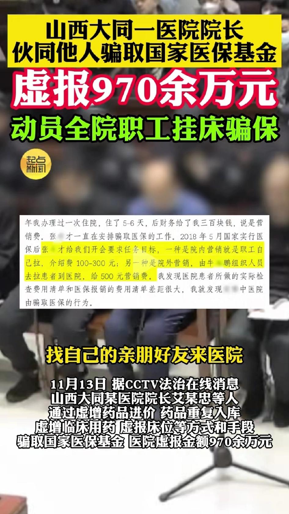 敢动员整个医院的职工骗医保的只有私立医院,私立医院为了赚钱,手段无所不用:虚开检查单,虚开住院单,虚报药品价格,虚开医药费等等各种手段。曾有新闻报道过,某些私立医院利用给老年人鸡蛋和回扣的方式,让老年人来住院,实则是好吃好喝的供着,以此来骗取医保费用。 公立医院断然是不敢的,公立医院的院长看重的是前途,有时候整个医院的收入他是不在乎的,他更愿意弄那些能够让上级看得见的表面工程,以此获得晋升。 现在有些私立医院既想赚钱又想走平民化道路,各项费用比公立医院高不少,导致老百姓都不去私立医院。 本来私立医院作为公立医院的补充,他们应该走的是高端医疗服务,聘请顶尖的医疗技术人员,给有钱人服务。但是这条路他们不知道怎么走,目前走得非常不好。 怎么办呢?让他们摸着石头过河吧!