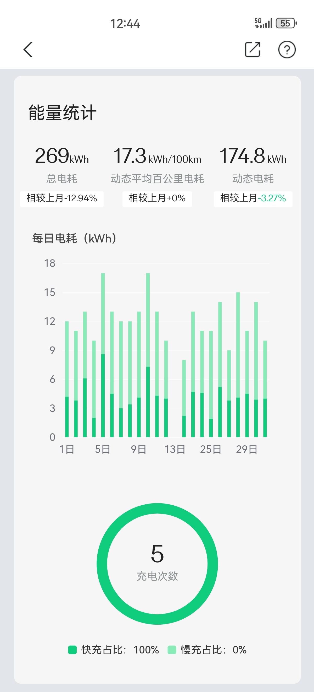 我的爱车是极氪7X四驱长续航版。2025年1月19日提车,至今行驶的总里程是15,721公里。 10月份的行程较少,只有1010公里。主要是因为10月份有10天是在外地出差,没有动车。 动态平均能耗是百公里17.3度,处于一年中的较低水平。主要是10月份空调开的很少,也没怎么跑长途。所以平均电耗处于较低水平。平均电耗最高的冬季能达到19度左右。如果是两驱版的能耗肯定要低一些。 我10月份总共充了5次电。其中4次在极氪极充站,一次在其它公共快充站。且都是在谷电时段充的电,最便宜的一次是2毛9一度,最贵的一次是5毛6一度。总花费149元整,用149除以1010公里等于0.1475,每公里约1毛5分钱。个人感觉还是非常划算的,比我过去的油车一块钱1公里优惠太多。【来自懂车帝车友圈】