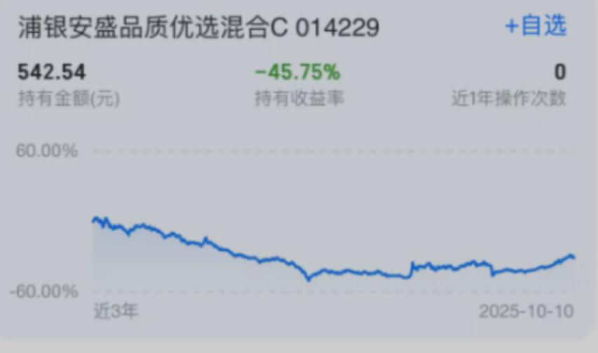 离任就离任吧! 近日,相关信息显示,公募基金浦银安盛基金经理蒋家良官宣离任。 业绩太差了,近些年来的投资,巨亏近50%管理费却提了超6000万。对于这样的基金经理,恐怕是自取其结果! 观察他所管理的浦银安盛品质优选混合基金,自2021年底以来,亏损超过45%,截止2025年11月10日,净值为0.5438元,近乎腰斩,这还是在去年924以来政策干预推升行情以来的成绩单! 对于这样的基金经理离职,恐怕基金持有人除了负收益之外,真的是一声叹息!