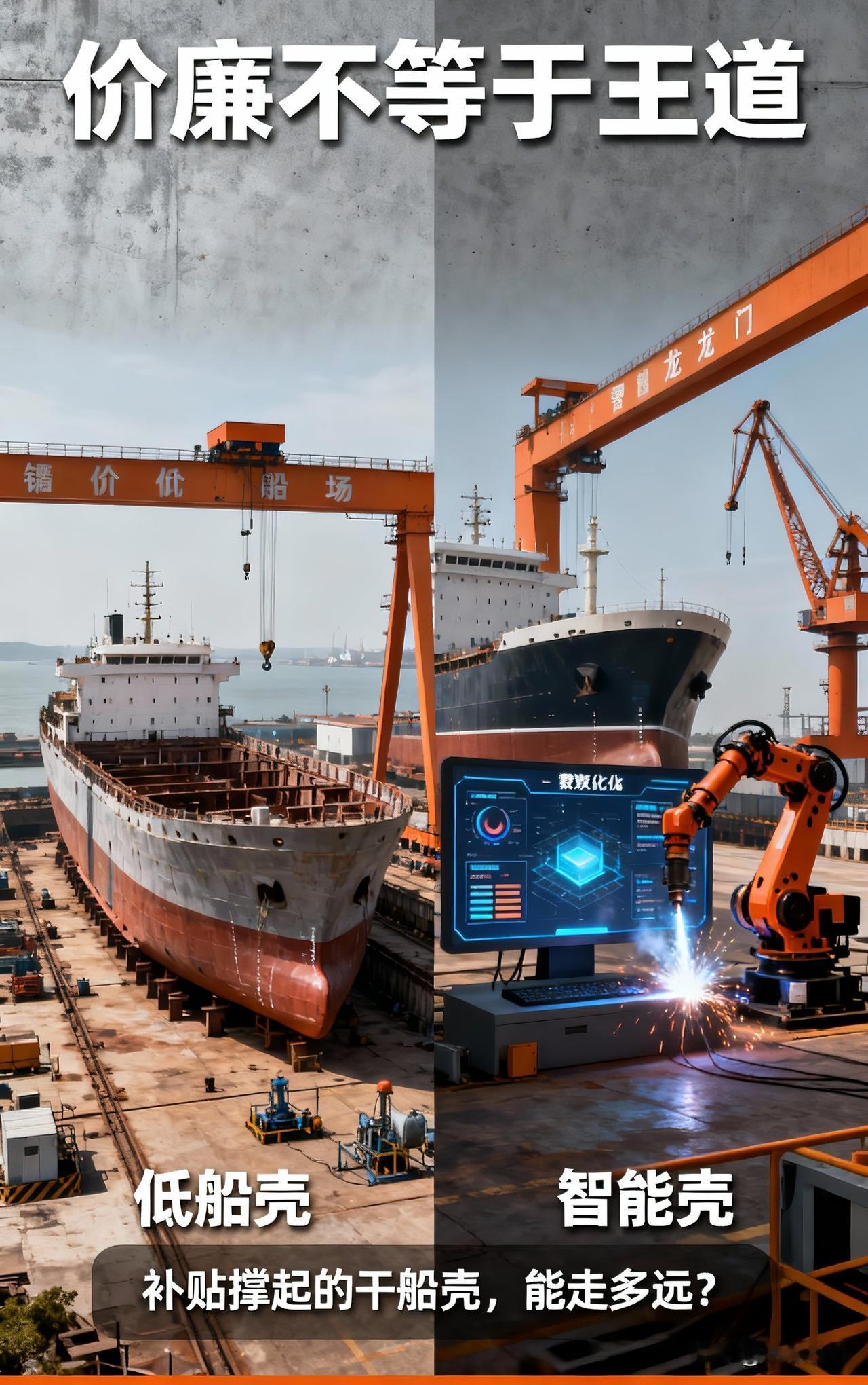 价廉≠王道 印度低价造船 7成设备进口!18月工期,凭啥赢? 印度能够拿下这单主要依靠两大优势:报价比中日韩便宜15%;交船时间比韩国快4个月。 按理说印度造船业发展势头很猛,拿下这么多订单,增速全球第一,但实际上它的市场份额仅0.06%,与东方大国67%的份额差距明显——这组数据像一面镜子,照出了"高增速"背后的虚实:增速或许能反映短期订单爆发,但市场份额才是产业话语权的真实刻度。 不得不说,印度的造船业现在还是一副"干船壳"的样子——看似完成了船舶外壳的组装,却远未达到"交钥匙工程"的完整标准。更触目惊心的是一组硬核数据:造船所需的焊接机器人、精密吊装设备、智能检测系统等核心装备超70%依赖进口; 显然,依靠低价竞争拿到的订单,无法真正造就繁荣,真正的硬实力才是造船业发展的根本——但当我们回望全球造船业百年兴衰史,会发现一个残酷规律: 每一次技术革命浪潮袭来,淘汰的从来不是"规模小"的船厂,而是"底子薄"的跟随者。印度船厂今日用15%价格优势抢下的6艘化学品船订单,会是未来突围的跳板,还是沦为"低端陷阱"的又一个注脚?