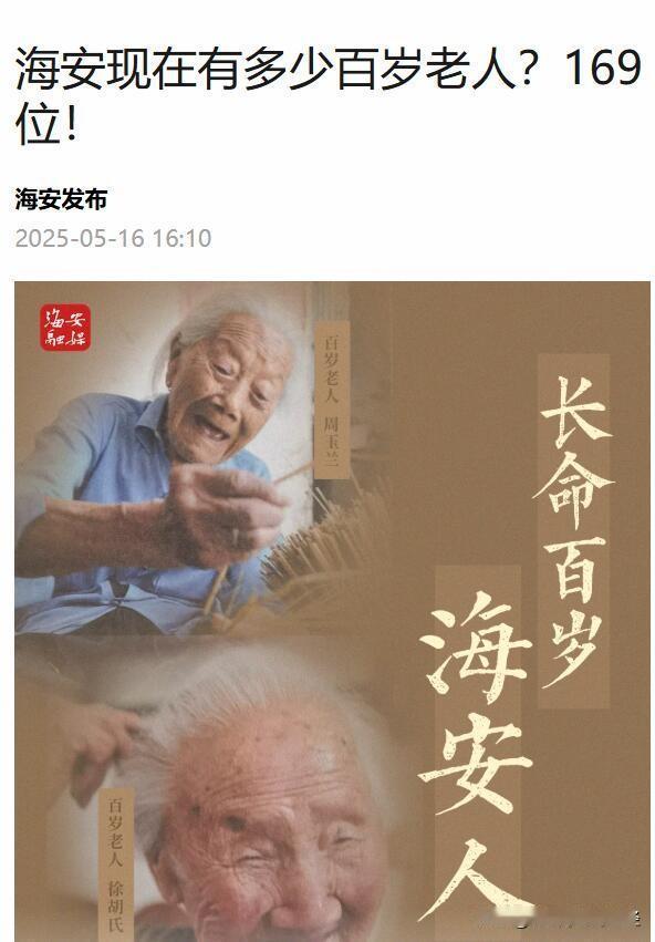 南通各县市百岁老人数量,如皋断崖式领先,已经超过600人;启东329人;通州区283人;如东县251人;海门区241人;海安市169人。影响长寿的因素除了水土,还有民风、饮食、生活方式等等。