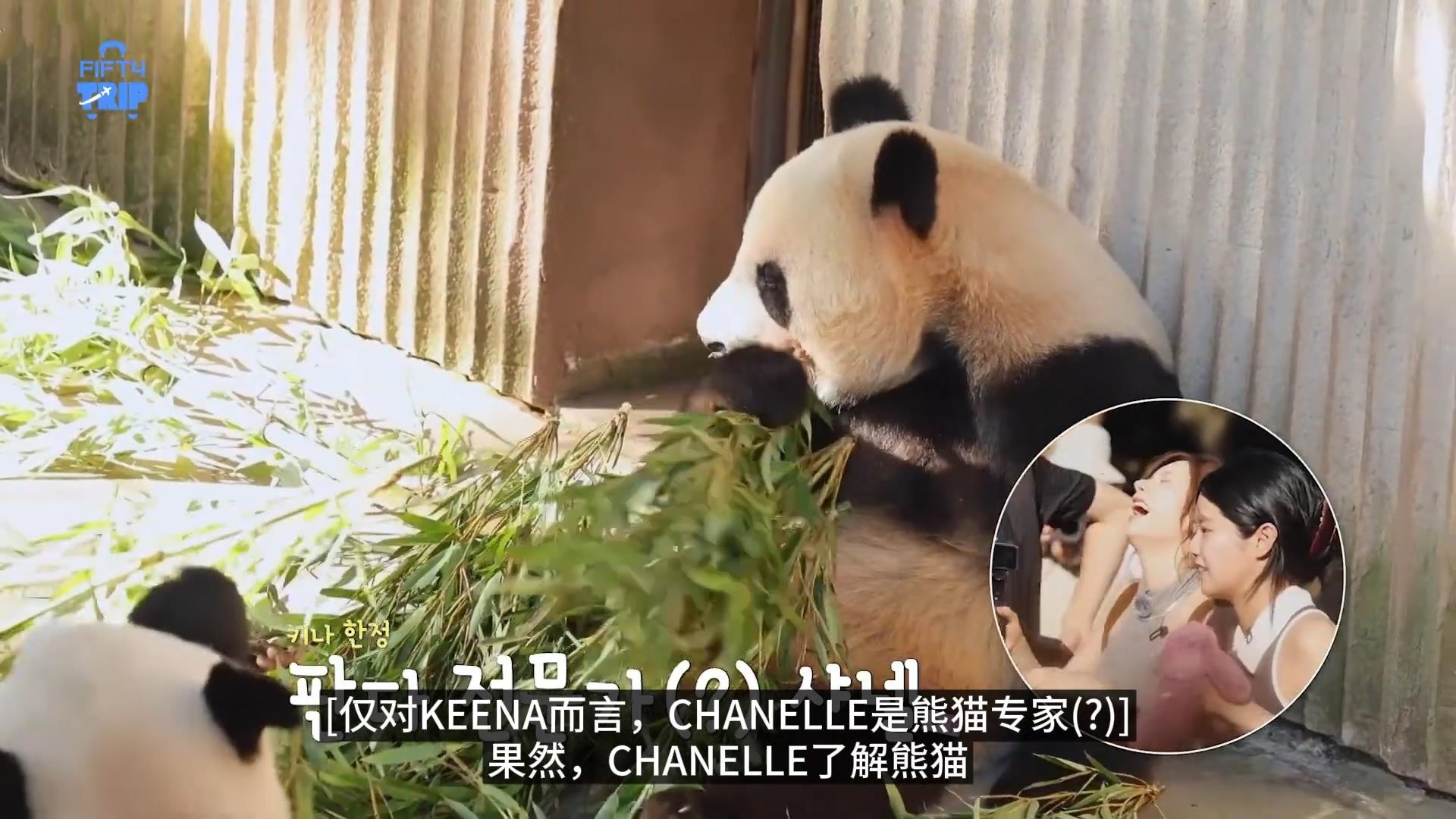 看着熊猫吃竹子,韩国女明星笑得嘴都合不上,一直不停说“可爱”。