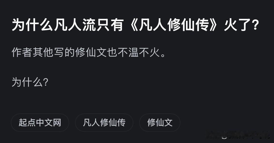 为什么只有《凡人修仙传》火了,而其它的凡人流小说却很难让人记住?这是我在网上看到