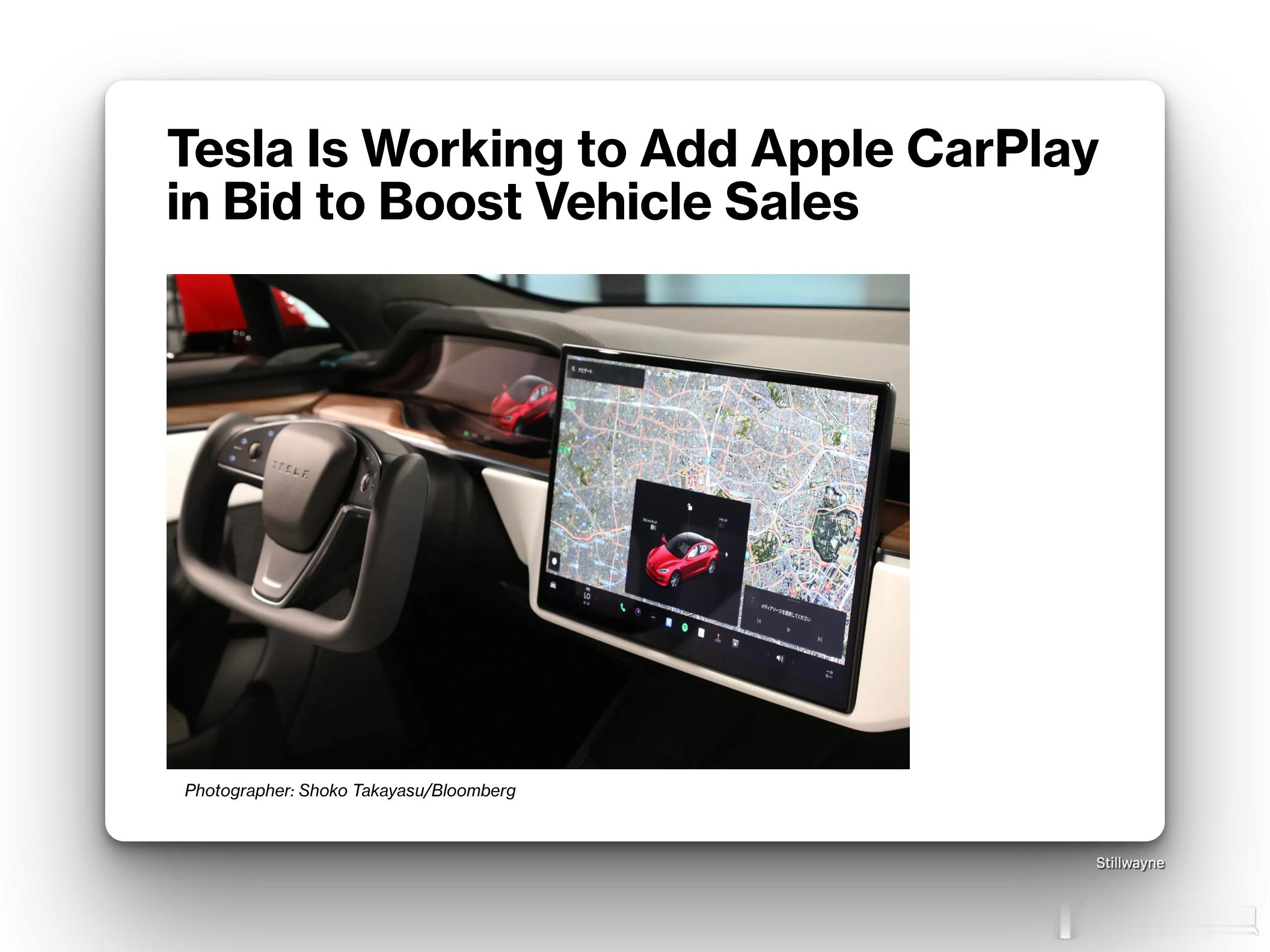 为提振销量,特斯拉正尝试让车辆支持苹果的 CarPlay 功能知情人士透露,特斯拉公司正在为其车辆开发对苹果公司CarPlay 系统的支持,努力添加客户最迫切需要的功能之一。据悉,特斯拉已开始内部测试这项功能。CarPlay平台长期以来一直受到其他汽车制造商的支持,它为用户提供针对车载信息娱乐系统优化的iPhone软件版本。许多驾驶员认为这是必备功能。特斯拉曾讨论过在未来几个月内推出CarPlay,但计划尚未最终确定,发布时间可能会有所延迟。
