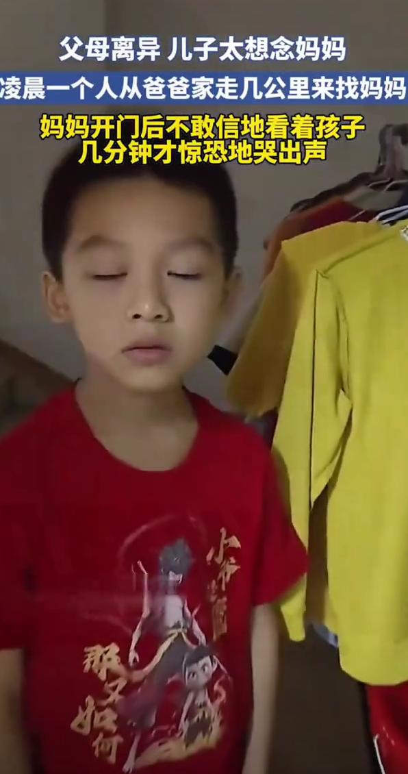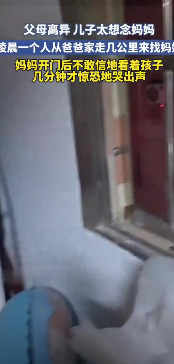 广东,父母离异,儿子因为太想念妈妈,凌晨一个人从爸爸家走几公里来找妈妈!当妈妈看到儿子站在门口,一脸不敢相信,随后惊恐哭出声!妈妈:“凌晨5点多,让这么小的孩子一个人光着脚丫跑出来,不给我孩子的抚养权,又不照顾好孩子,负责任吗?” 广东这则新闻,看得人心里又疼又堵,一对夫妻离异后,儿子的抚养权判给了爸爸,可谁也没想到,这个才几岁的小家伙,因为太想念妈妈,竟然在凌晨五点,一个人光着脚丫,走了好几公里的夜路,摸到了妈妈家门口,当妈妈睡眼惺忪地打开门,看到站在门外的儿子时,整个人都僵住了,不敢相信自己的眼睛,下一秒就抱着孩子崩溃大哭。 那天凌晨的广东,还带着夜露的寒意,天刚蒙蒙亮街上几乎没什么行人,妈妈是被一阵轻轻的敲门声吵醒的,一开始以为是幻听,直到敲门声越来越清晰,她才揉着眼睛起身去开门。 门一打开就看到儿子小小的身影缩在门口,身上的衣服沾着露水,湿漉漉地贴在身上,头发也乱糟糟的,最让人揪心的是,他竟然光着两只脚,小脚丫又红又肿,上面还沾着泥土和细小的划痕,一看就是走了很远的路。 妈妈的心脏像被狠狠攥住一样,又惊又痛一把把孩子搂进怀里。孩子身上的凉意透过衣服传过来,她才发现孩子浑身都冻得冰凉,怀里还紧紧攥着一个皱巴巴的小玩具,那是妈妈以前给买的。 小家伙见到妈妈,委屈的眼泪一下子就流了出来,小声喊着 “妈妈”,声音沙哑又虚弱,看样子是又冷又怕还累坏了。 妈妈一边赶紧把孩子抱进屋里,用毯子裹住他冰凉的身体,一边忍不住掉眼泪,心里又后怕又愤怒,她给孩子暖着脚丫,看着那些磨出来的红印越想越心疼,凌晨五点多天还没亮,街上又黑又冷孩子那么小,怎么敢一个人走这么远的路?万一遇到危险怎么办?万一走丢了或者出点意外,这辈子都没法原谅自己。 冷静下来后,妈妈才慢慢知道,孩子是太想她了,夜里翻来覆去睡不着,就趁着爸爸不注意,悄悄溜出了家门,从爸爸家到妈妈家,足足有好几公里的路,平时大人走路都要半个多小时,一个小孩子,还是光着脚在凌晨的柏油路上走,想想都让人头皮发麻。 孩子说路上很黑,他有点怕就一路跑一路喊妈妈,脚疼得厉害,可一想到能见到妈妈,就一直往前走没敢停下。 这话让妈妈的心碎成了渣,她忍不住对着电话那头的前夫质问道:“当初你非要争孩子的抚养权,我以为你是真心想照顾他,结果呢?你连孩子半夜跑出去都不知道,让他一个人光着脚丫在凌晨的街上走,你到底负不负责任?” 其实这不是妈妈第一次觉得前夫照顾不好孩子,自从离婚后孩子跟着爸爸,总是显得闷闷不乐,有时候视频通话,还会偷偷抹眼泪说想妈妈,可前夫总说自己忙,没时间顾及这些,还觉得孩子只是一时不习惯。 谁都知道父母离异对孩子的伤害最大,可最让人无奈的是,有些家长争抚养权,并不是真的为了孩子好,就像这个孩子的爸爸,当初非要抢抚养权,很大程度上是受了 “传宗接代” 的老旧思想影响,觉得儿子必须跟着自己才能延续香火。 在他眼里孩子更像是一件 “财产”,一个承载姓氏的符号,而不是一个需要陪伴、需要关爱、需要安全感的小生命。 所以拿到抚养权后,他并没有真正尽到照顾的责任,忽略孩子的情绪疏于看管,才让孩子做出了独自深夜找妈妈的举动,对孩子来说,法律文书上写的 “抚养权归父亲”,根本不是什么温暖的港湾,反而成了一道隔绝母爱的墙,他用最原始、最让人心疼的方式,反抗着这份冰冷的判决,光着脚丫一步一步走向自己心里真正的家。 这事儿传到网上后,很多人都感同身受,不少有过离异经历的网友说,打抚养权官司的时候,大家都在争 “归属权”,却很少有人真正问过孩子想要什么。 法律能判定孩子归谁,但没法强制要求家长付出真心的关爱,更没法保障孩子在成长过程中的幸福感,很多时候官司结束了,判决生效了,可孩子的委屈和孤独才刚刚开始。 我们总说要保护孩子,可真正的保护,不该只是一张抚养权判决书,它需要家长放下自己的私心,多站在孩子的角度想想,需要法律在判决之后,能有更多后续的跟进和监督,看看孩子的生活状态到底怎么样,更需要整个社会都明白,孩子不是用来争夺的 “物品”,而是需要被用心呵护的生命。