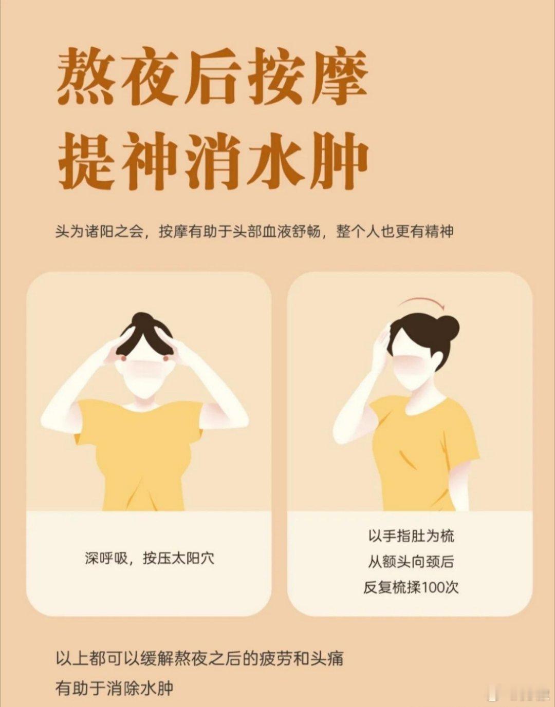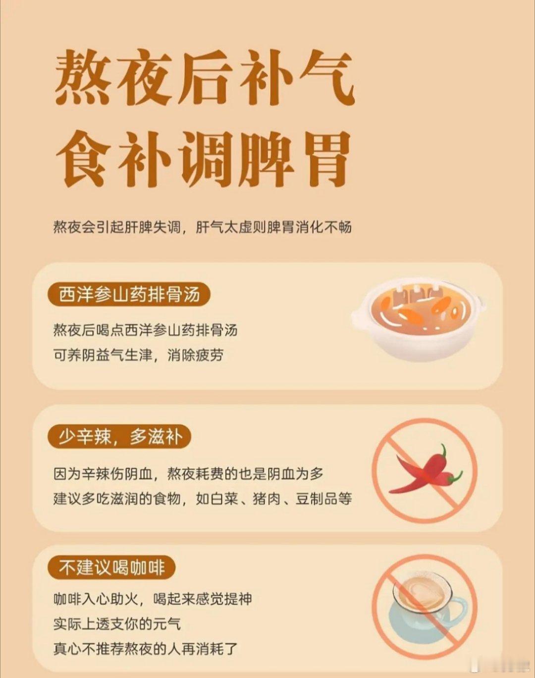 熬夜补救指南‼️4步让你快速恢复元气🐂打工人熬夜能有多凶,人就有多憔悴〰特别是女生‼️熬一次夜=垮脸、长斑、暗黄……醒来丑到不想见人〰小奈今天就给大家分享4个熬夜补救措施🙋帮你快速恢复元气,减少熬夜对身体的伤害💪〰首先我们来看看熬夜对身体有哪些伤害❓1⃣长期熬夜,会造成肝阴双虚,眼睛干涩、失眠口苦、便秘、月经不调、黄褐斑也随之而来〰2⃣头发枯黄、脱发、记忆力大大下降〰3⃣心血不足、心慌慌、脸色蜡黄〰4⃣脾胃失调,肠胃消化差〰如果不可避免地熬夜了,试试下面这4种方法可以帮你快速恢复元气,减少熬夜对身体的伤害❌•✅补觉熬夜之后,第二天这两个时间段记得补觉🔸午时(11点-13点)——心经最旺午睡是最好的养心养神方式🔸子时(23点-1点)——胆经最旺子时前入睡是对肝胆最好的照顾,能促进肝胆排毒•✅护肝太冲穴、大敦穴、三阴交穴,这3个护肝穴位摸鱼时多按按•✅补气喝点西洋参山药排骨汤调理脾胃•✅消水肿多用指腹按摩头部,疏通血液循环,提神醒脑之余还能消水肿⚠️⚠️⚠️当然!!最好的健康养生方式还是早点睡觉,少熬夜,希望每位小仙女都能元气满满,气色红润自然美