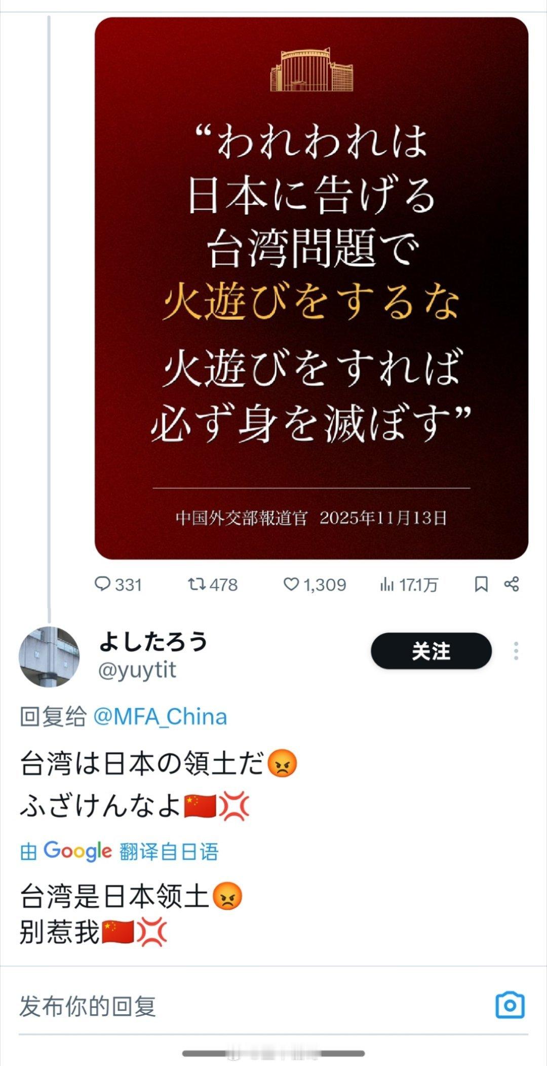 日本一堆网民还在拱火,继续拱火下去,台湾没事,日本都要有事。