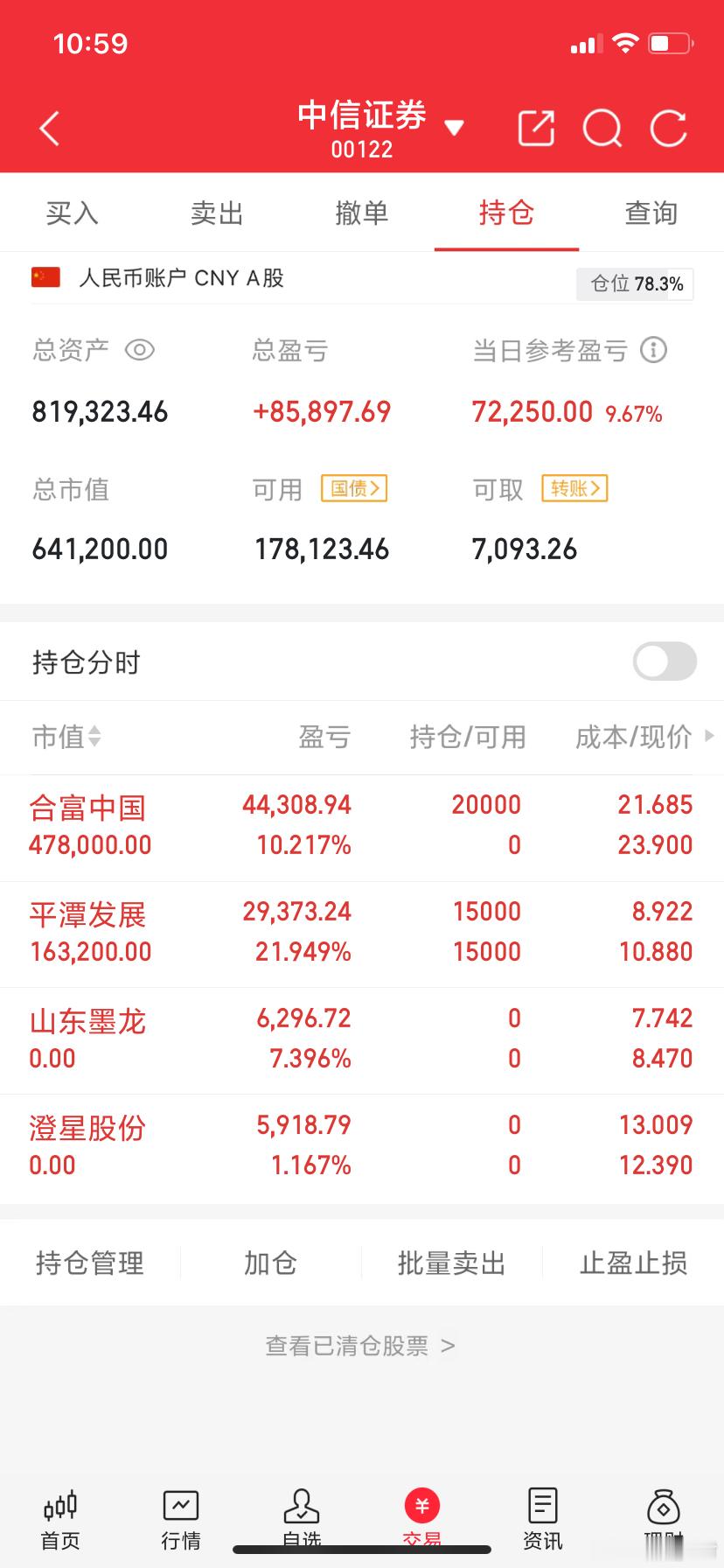 阿城实盘,今天最新操作记录:今日卖出: 山东墨龙 $澄星股份 sh600078$ 今日上车: 合富中国今日持仓: 平潭发展 特别声明:我开实盘的目的主要是为了记录我对A股走势的思考和研判,并用于记录我自己的操作笔记,是我积累股票投资知识和反省操作失误的一个平台,绝不是读者朋友买卖股票的依据和理由,不具备投资建议,据此操作,需自行承担投资后果,股市有风险,投资需谨慎