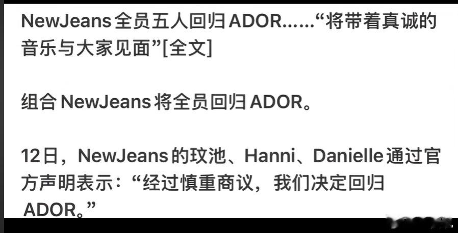 newjeans自己开直播,自己要求解约,自己官宣回归。ador是想要两个,不是
