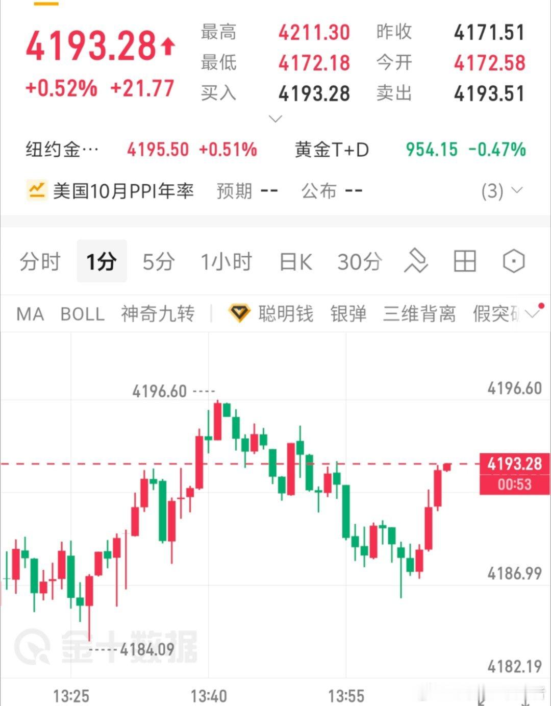 黄金4188位置多单进场已收割50点利润温馨提醒:场外兄弟们注意护利,不要贪心,