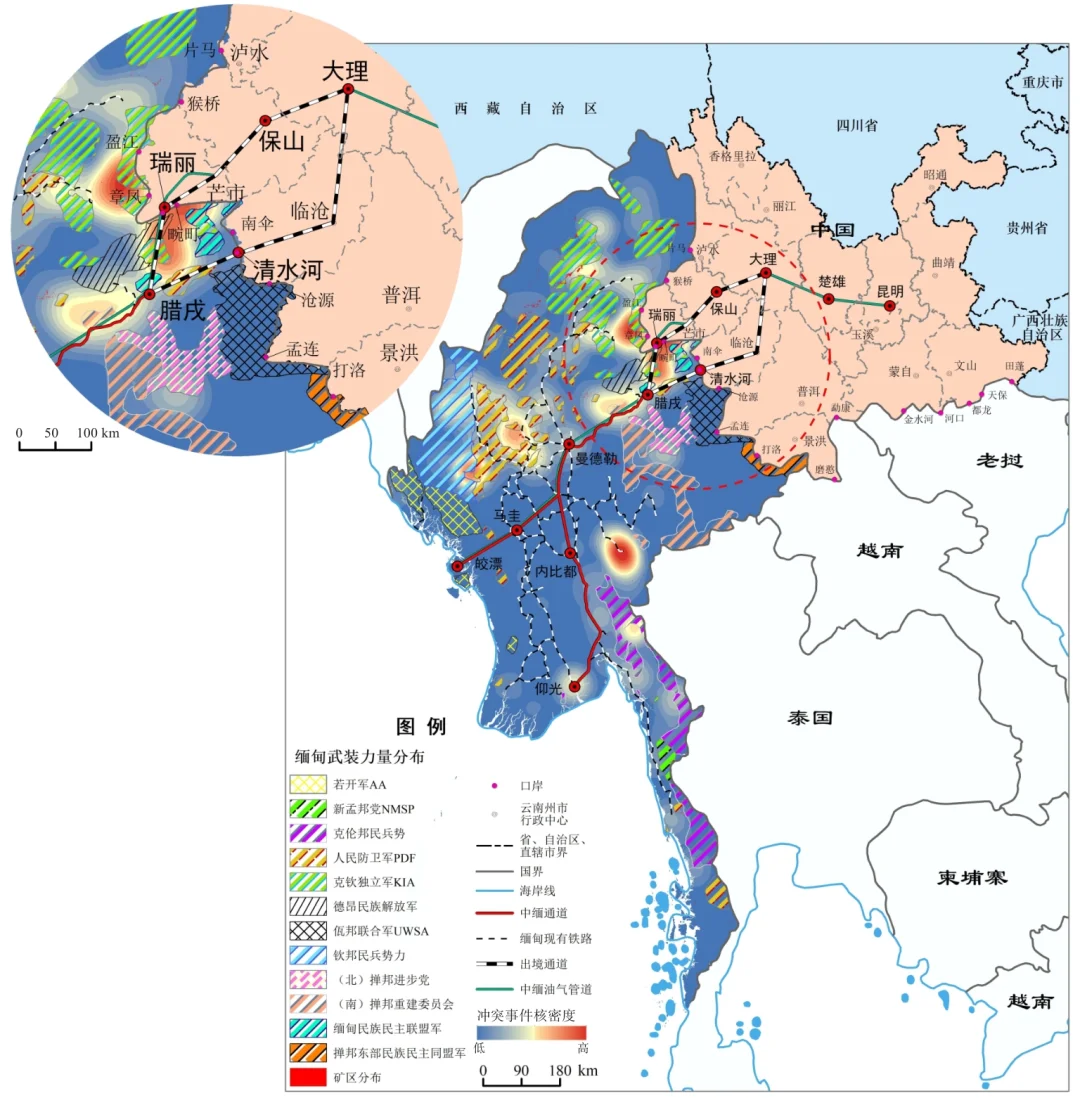 [一R] 新通道经过的地区是缅甸武装冲突相对较少地区,但并不能完全规避沿线武装冲突热点地区。如,中缅铁路项目之一的木姐至曼德勒铁路;
