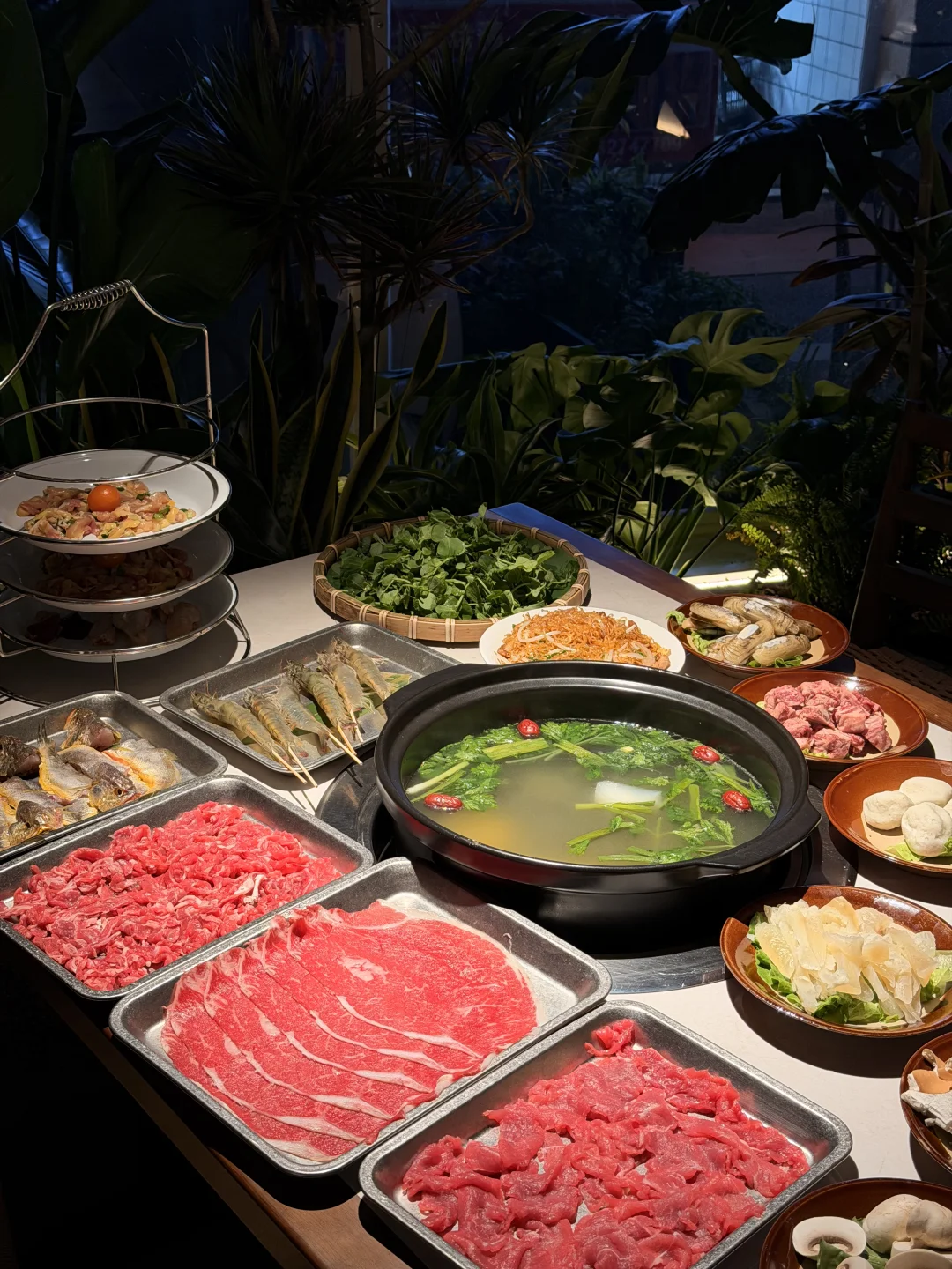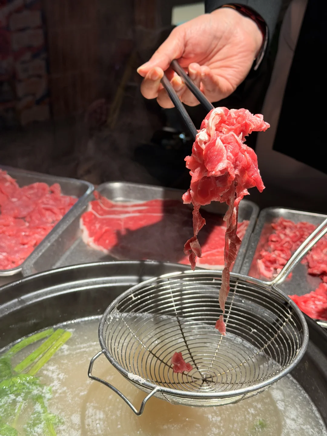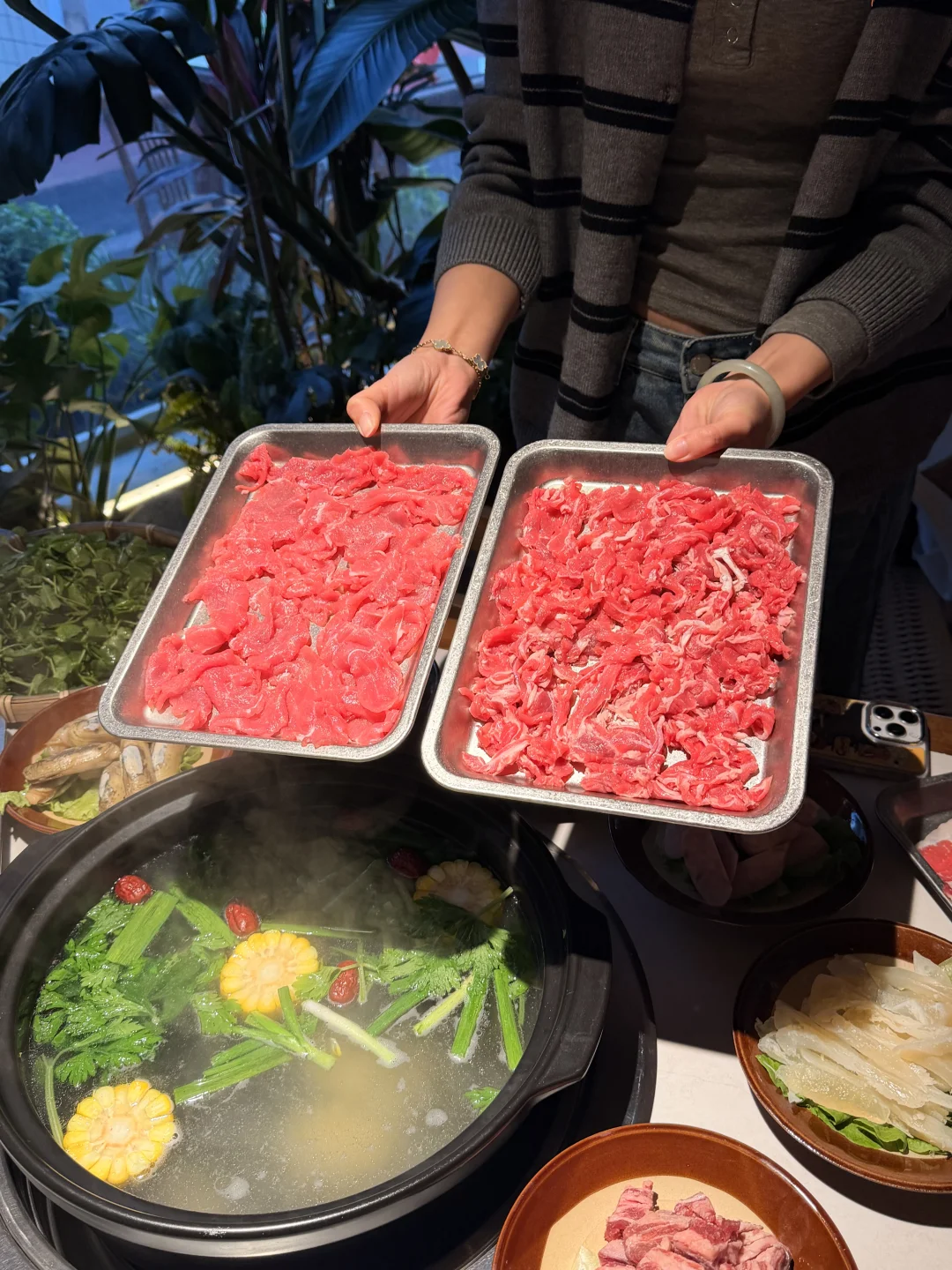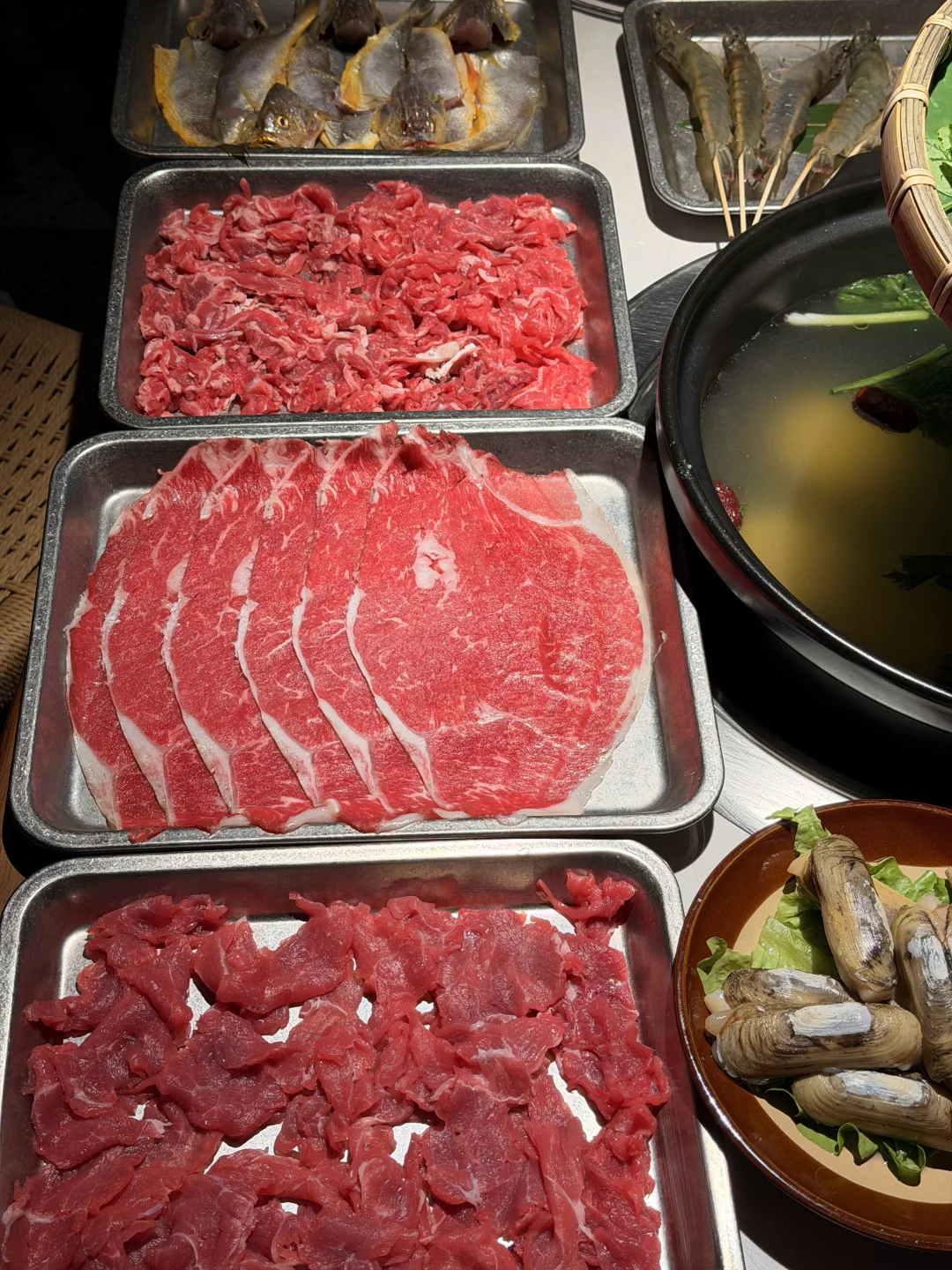 在南通学田菜市场里面的宝藏火锅店 在这里 实现云南菌子➕潮汕鲜牛肉自由🥩 明档厨房 师傅新鲜现切的牛肉 汤底沸腾 牛肉涮上几秒 变色就可以吃了 肉质紧致 鲜嫩多汁🥰推荐和牛肋条 鲜切吊龙 🌟鲜切黄油鸡 点了半份 鸡肉片成小片 涮几秒真的鸡肉q弹多汁❗ 新鲜的各种蔬菜 菌子 鲜活的大虾 想吃啥都有 关键是49r半斤 这真的可以敞开吃了🥰 📍:潮山滇