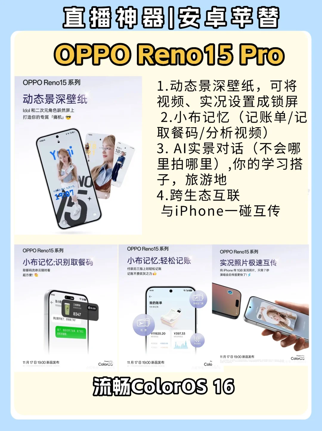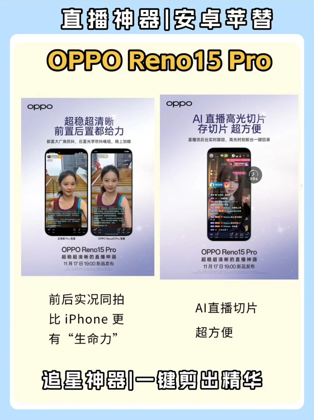 总之,如果宝子们想入手一款超轻超清超稳直播神器,一定要关注OPPO Reno15 Pro。