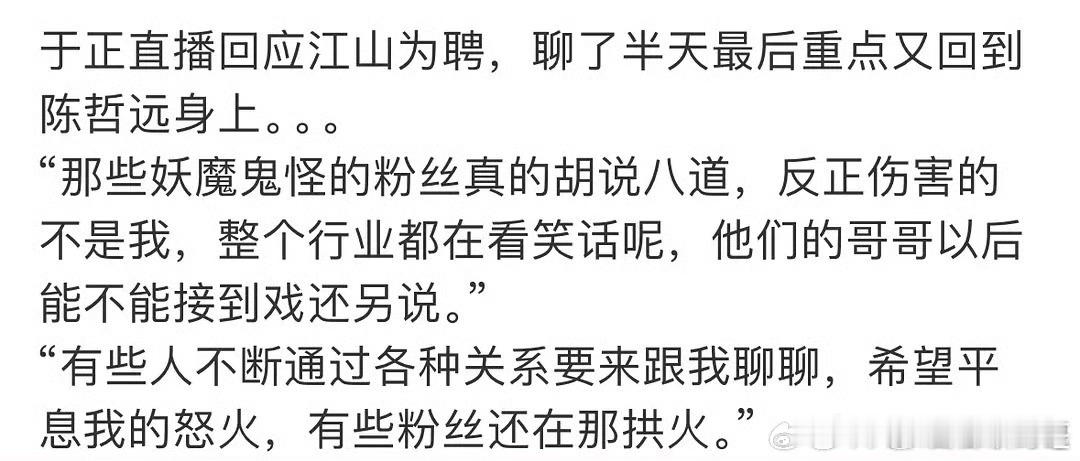 不了解陈哲远,我还不了解于正吗,到底是咋回事他心里清楚着呢