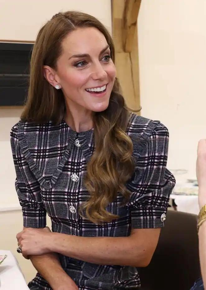 凯特的翻领连衣裙Style[耶] 是她一直钟爱的亚历山德拉·里奇, 白色蕾丝也有、格子大翻领也有, 是近年凯特突破自己时尚风格的选择, 经典的复古大翻领依然走在时尚前沿[来看我]