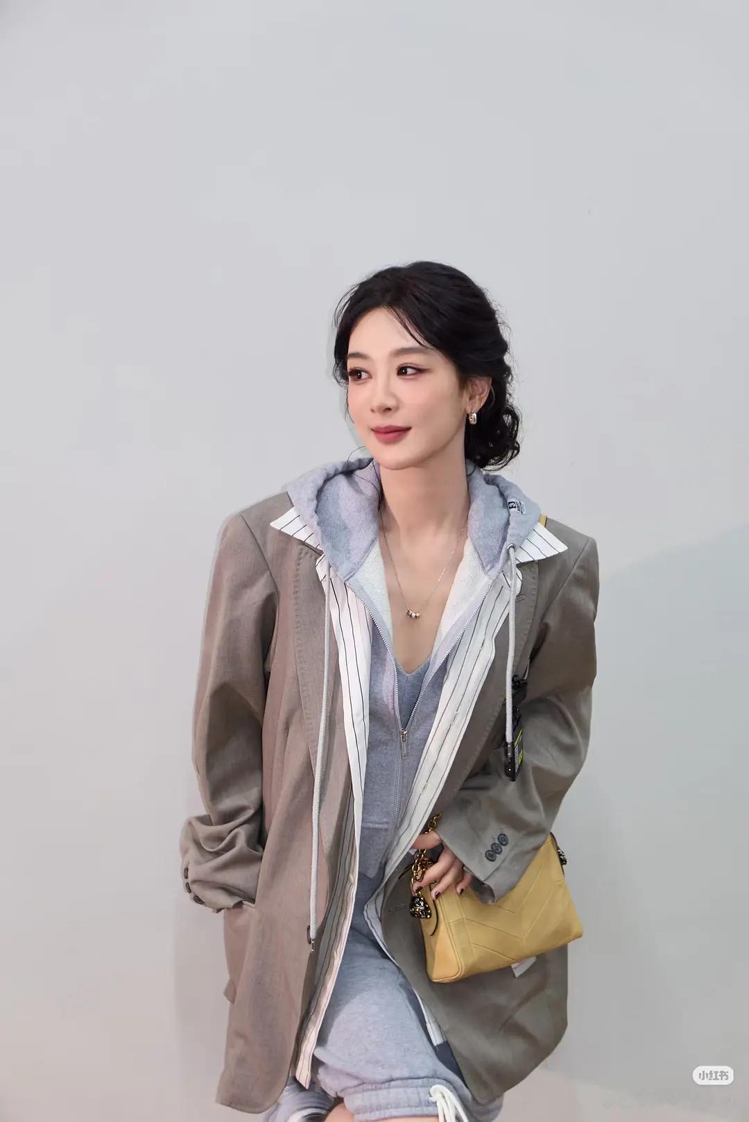 刘亦菲把死亡玫粉穿出了定制款的感觉,这种颜色普通人穿上分分钟黑三度,她居然能穿出
