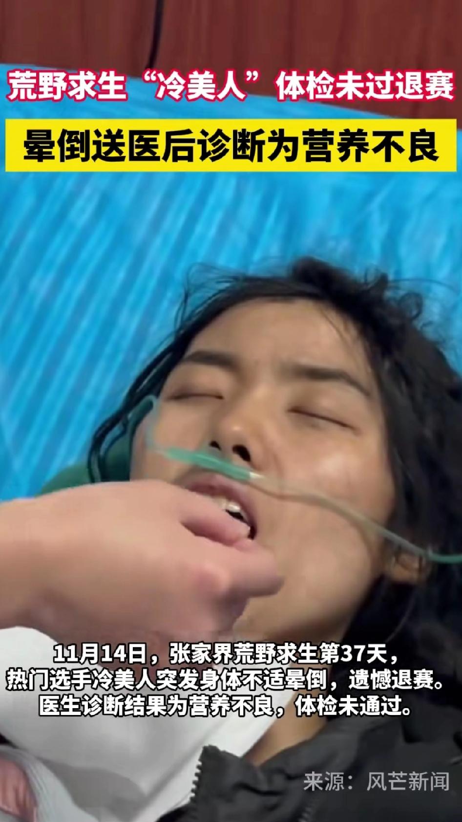 冷美人被迫退出比赛,她突发不适晕倒,被送到医院,医生说是营养不良,也就是说冷美人是被饿晕的。冷美人对那10万块钱的奖金真的很执着,饿的受不了了,还在坚持。这也说明女性的野外生存能力其实没有男性强,男性在体力上具有天然的优势,最重要的是男性在动手能力上强于女性,因此冷美人被淘汰是迟早的事。虽然冷美人被淘汰,但是现在她已经全网有名了,所以等到出院以后,我料想她一定是会开直播的,我相信通过直播她能够赚到10万块,这也不枉她野外生存了30多天,付出了惨重的代价。 天下熙熙皆为利来,天下攘攘皆为往。如果冷美人的直播能够大获成功,那么将会有更多的人参加此类野外生存活动,有更多的奇葩人奇葩事出现,可以说是平民的造星运动了。 最后,祝冷美人早日恢复健康!